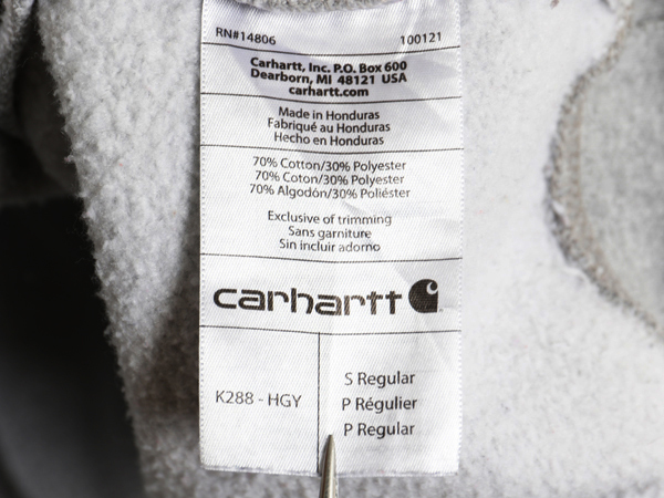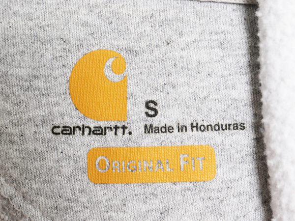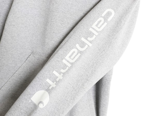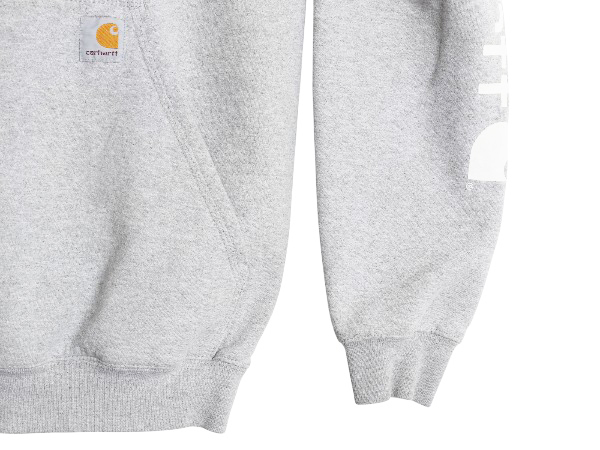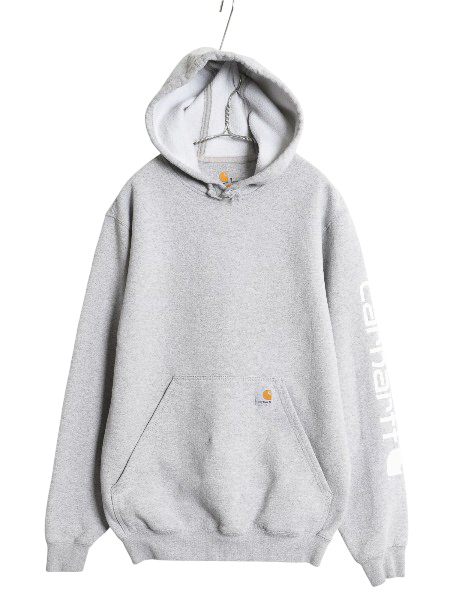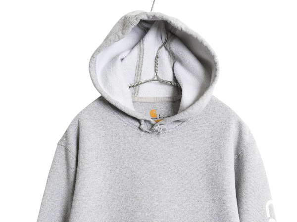 商品名 | カーハート スウェット フード パーカー メンズ S / 古着 袖 ロゴ プリント トレーナー 裏起毛 プルオーバー ミドルウェイト 霜降り グレー |