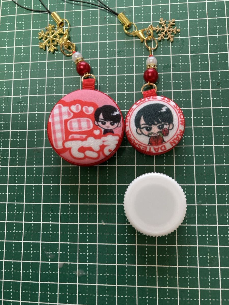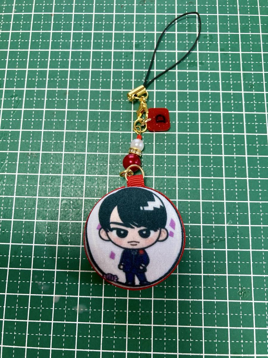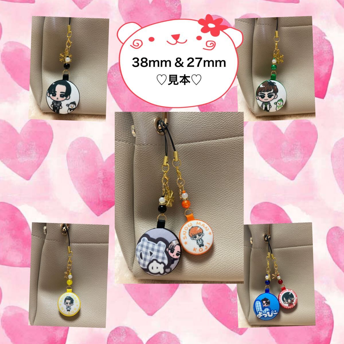 38mmのくるみボタンで作ったリバーシブルストラップです(^^)