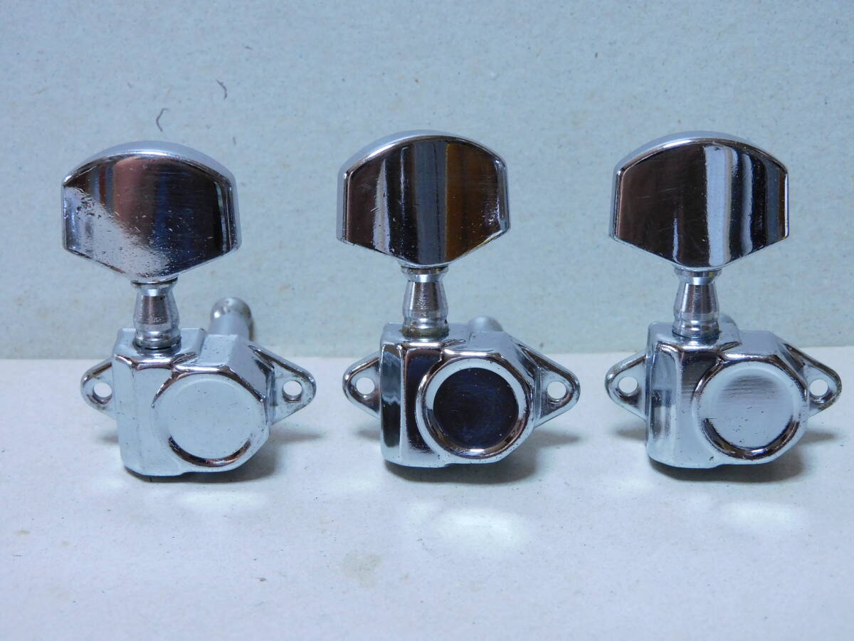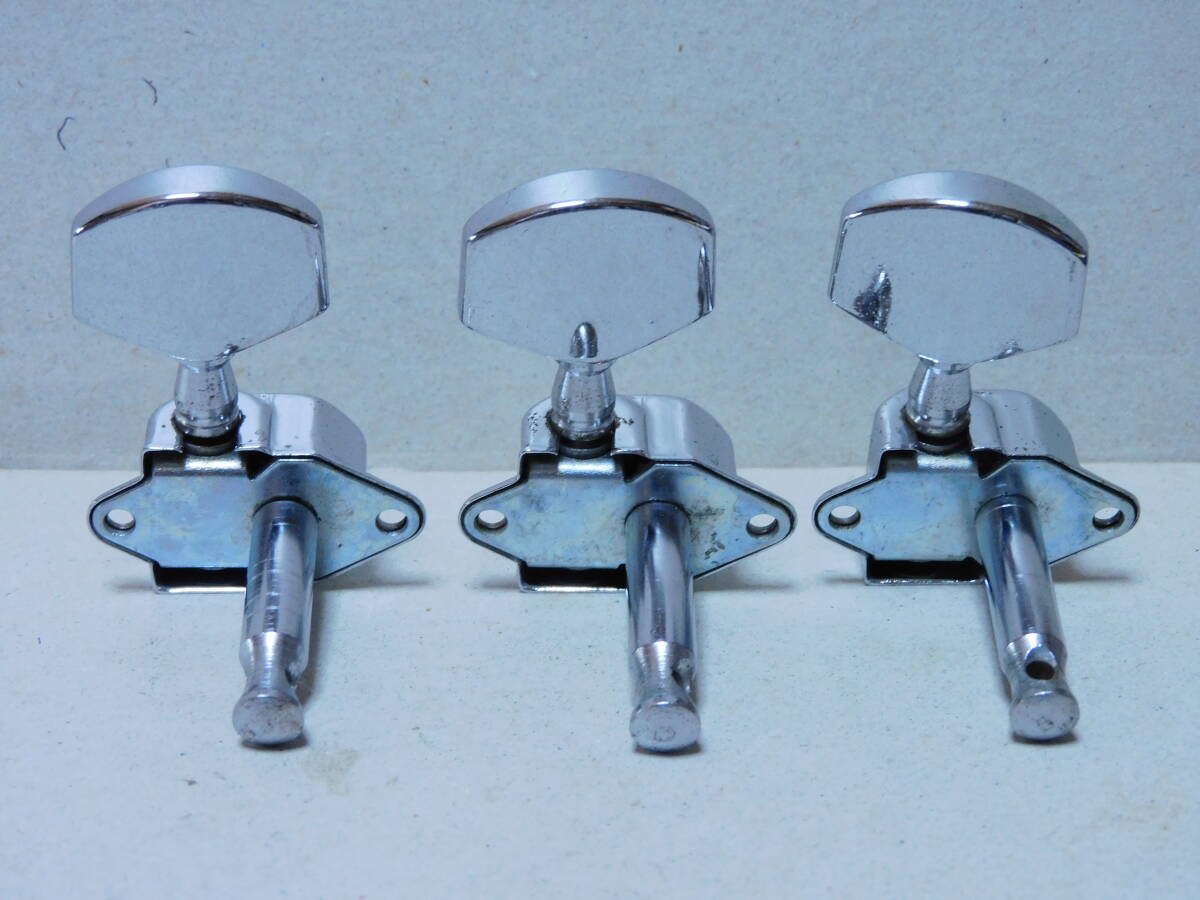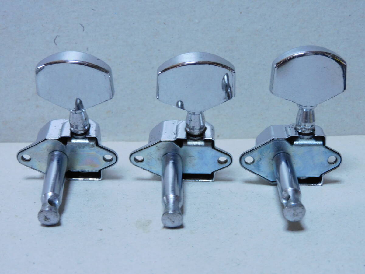 ②1970年代製「国産」のフォークギターに付いていたカバードペグ「3X3/クローム」です。70年代製のモーリスギター等に使用されていたタイプです。40~50年程前のモデルなので、年相応のメッキ等の経年劣化はありますが全体に綺麗です。点検済みで現状使用可能です。状態は画像でご確認ください。取り付け用新品ネジ12本とブッシュ6個付きです。状態は画像でご確認ください。当方にて出来るだけのクリーニングはしていますが必要なメンテナンスやクリーニングは落札者様でお願いします。画像にあるものが全てです。画像やコメントをご参考に入札お願い致します。それではオーションが終わりますまでよろしくお願い致します。中古点検品の為落札後のクレームやキャンセルはご遠慮下さい。またオークション開催中の入札の取り消しもお受け出来ません。あくまでも中古品なのでキズや経年劣化等些細な事や、完璧な商品をお考えの方は入札をお控え下さい。ご理解の上ご入札下さい。発送は「レターパックライト」で430円です。