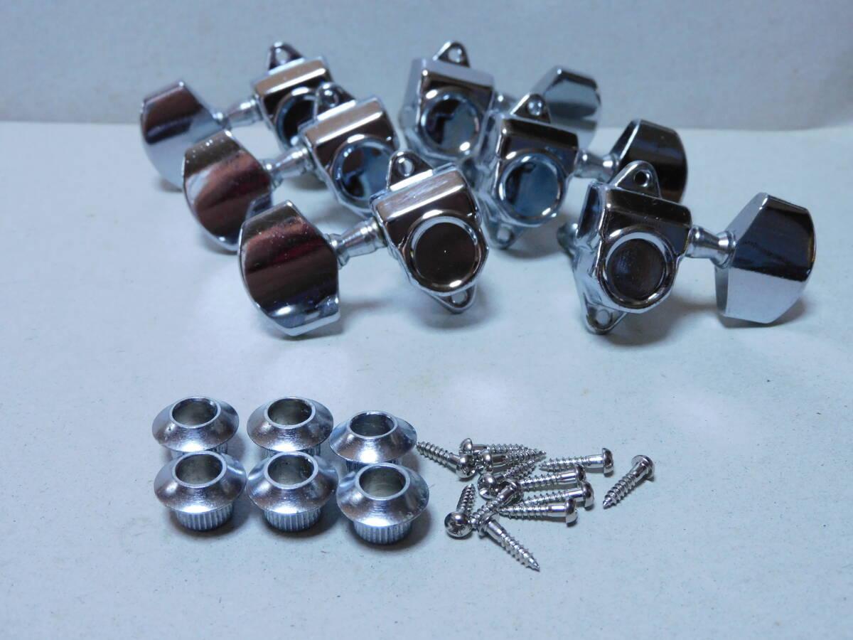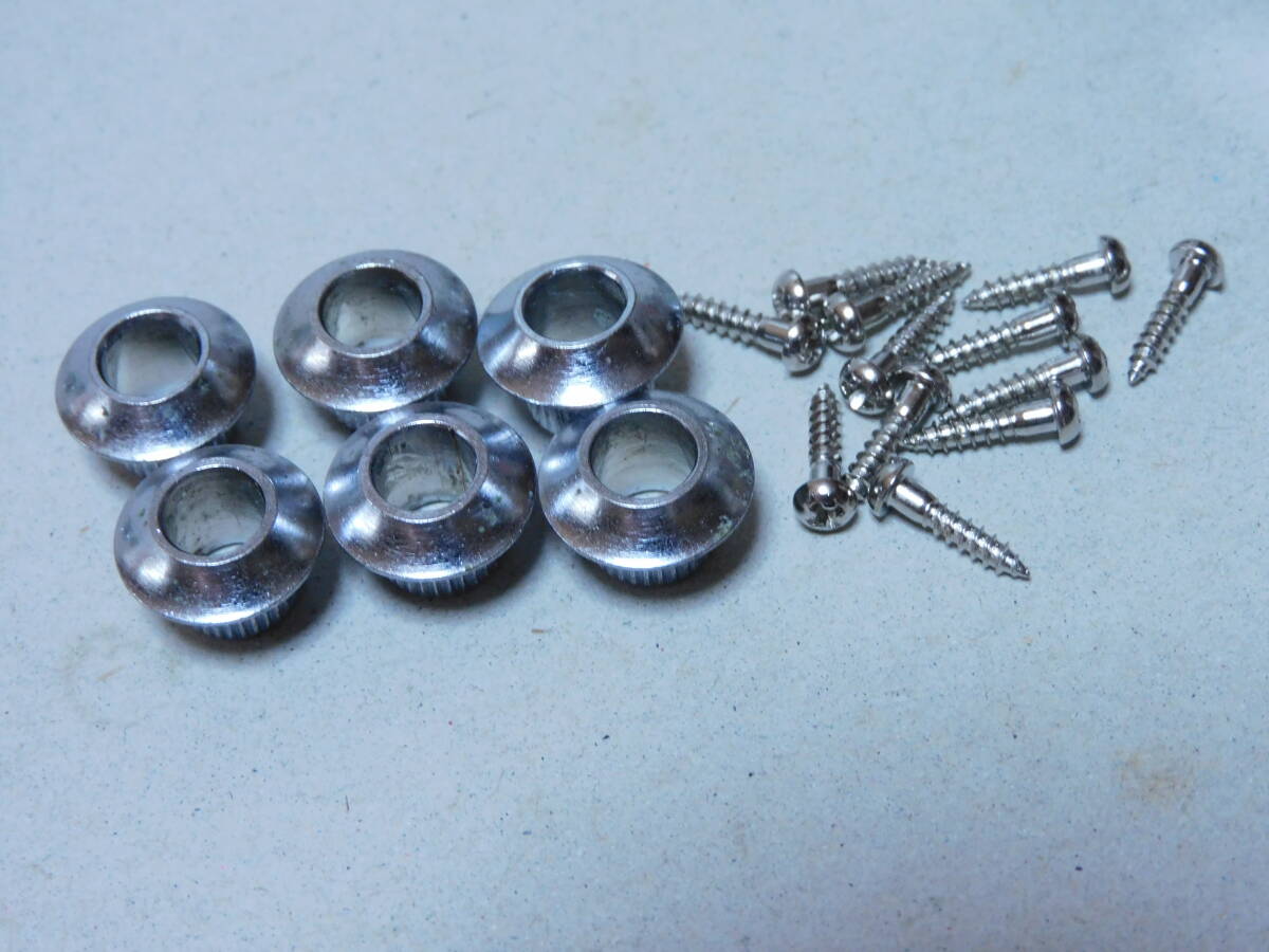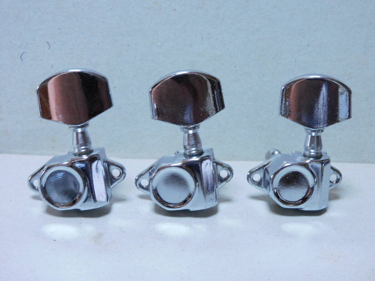 ②1970年代製「国産」のフォークギターに付いていたカバードペグ「3X3/クローム」です。70年代製のモーリスギター等に使用されていたタイプです。40~50年程前のモデルなので、年相応のメッキ等の経年劣化はありますが全体に綺麗です。点検済みで現状使用可能です。状態は画像でご確認ください。取り付け用新品ネジ12本とブッシュ6個付きです。状態は画像でご確認ください。当方にて出来るだけのクリーニングはしていますが必要なメンテナンスやクリーニングは落札者様でお願いします。画像にあるものが全てです。画像やコメントをご参考に入札お願い致します。それではオーションが終わりますまでよろしくお願い致します。中古点検品の為落札後のクレームやキャンセルはご遠慮下さい。またオークション開催中の入札の取り消しもお受け出来ません。あくまでも中古品なのでキズや経年劣化等些細な事や、完璧な商品をお考えの方は入札をお控え下さい。ご理解の上ご入札下さい。発送は「レターパックライト」で430円です。