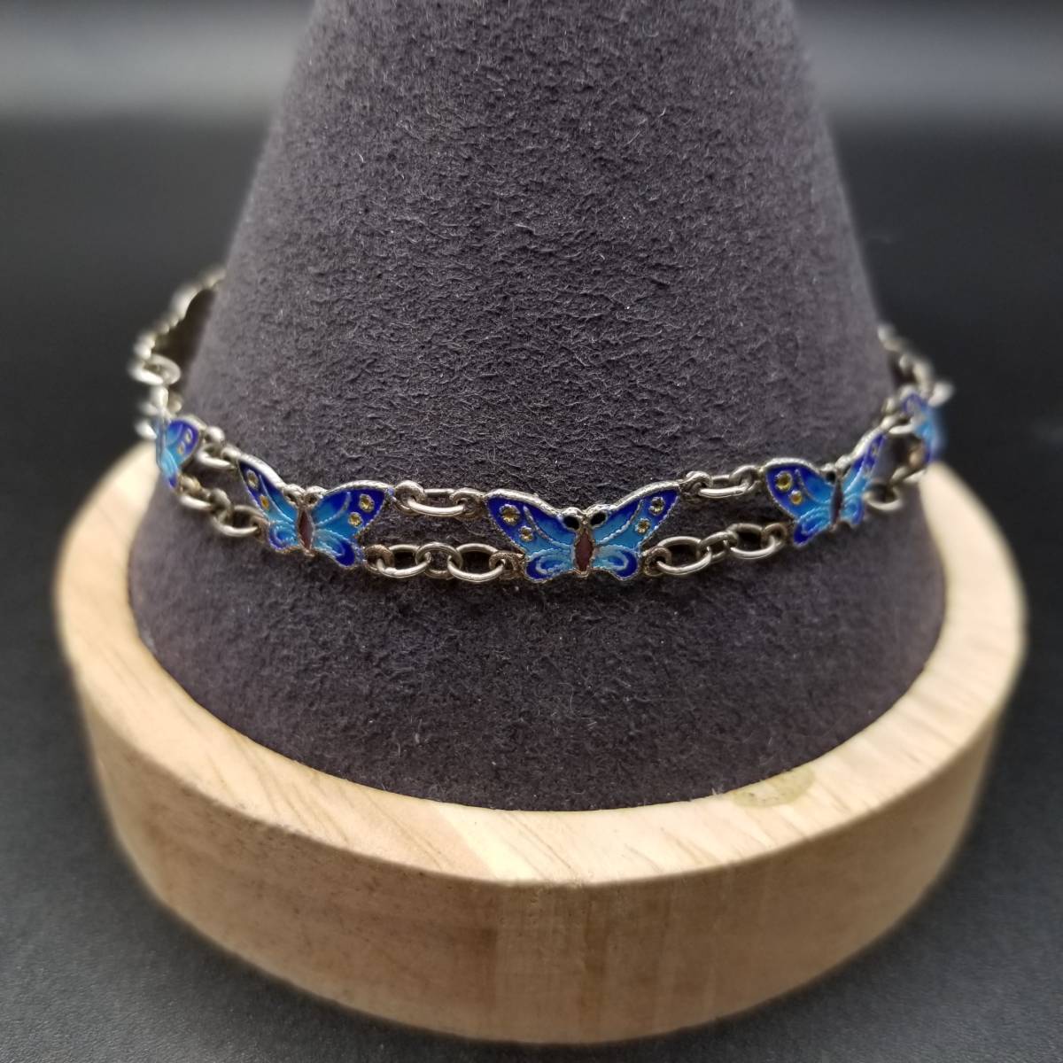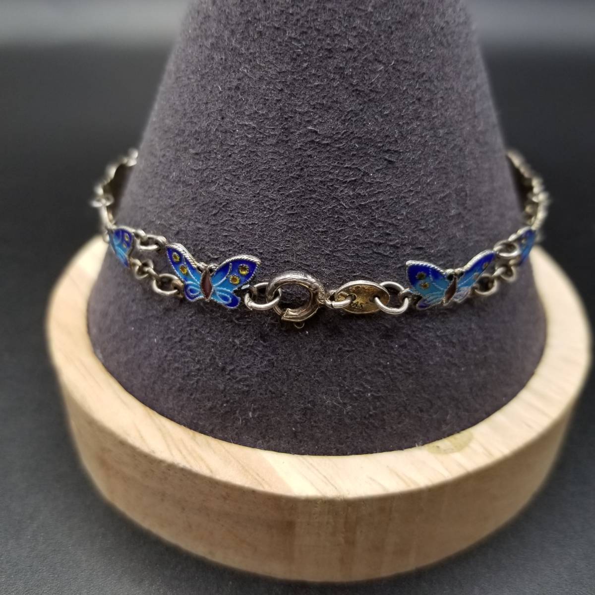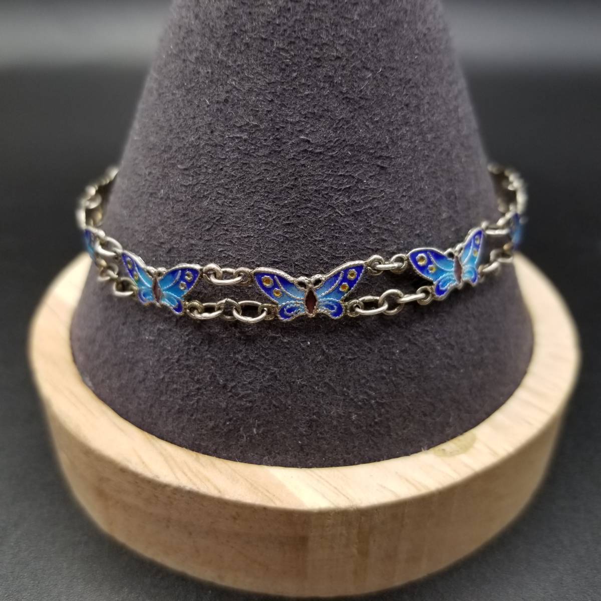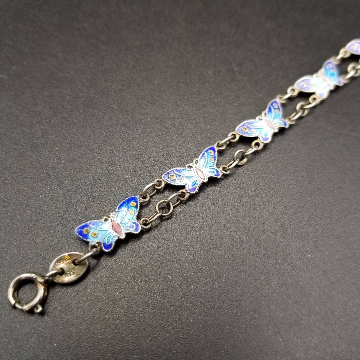 FAS 青い蝶 エナメル装飾 925 シルバー ヴィンテージ バタフライ ブレスレット 銀 レトロ 昆虫モチーフ Y13-F