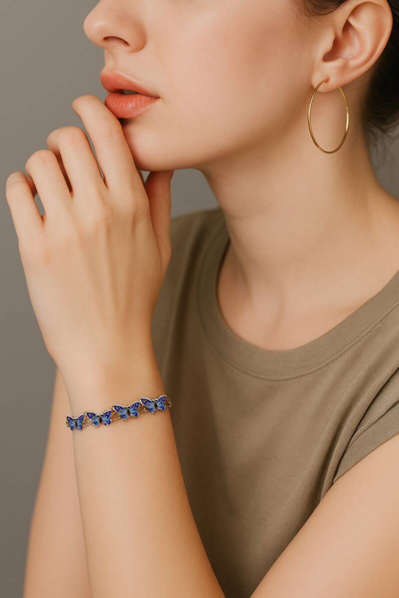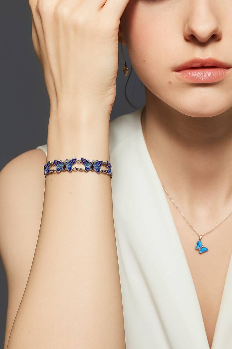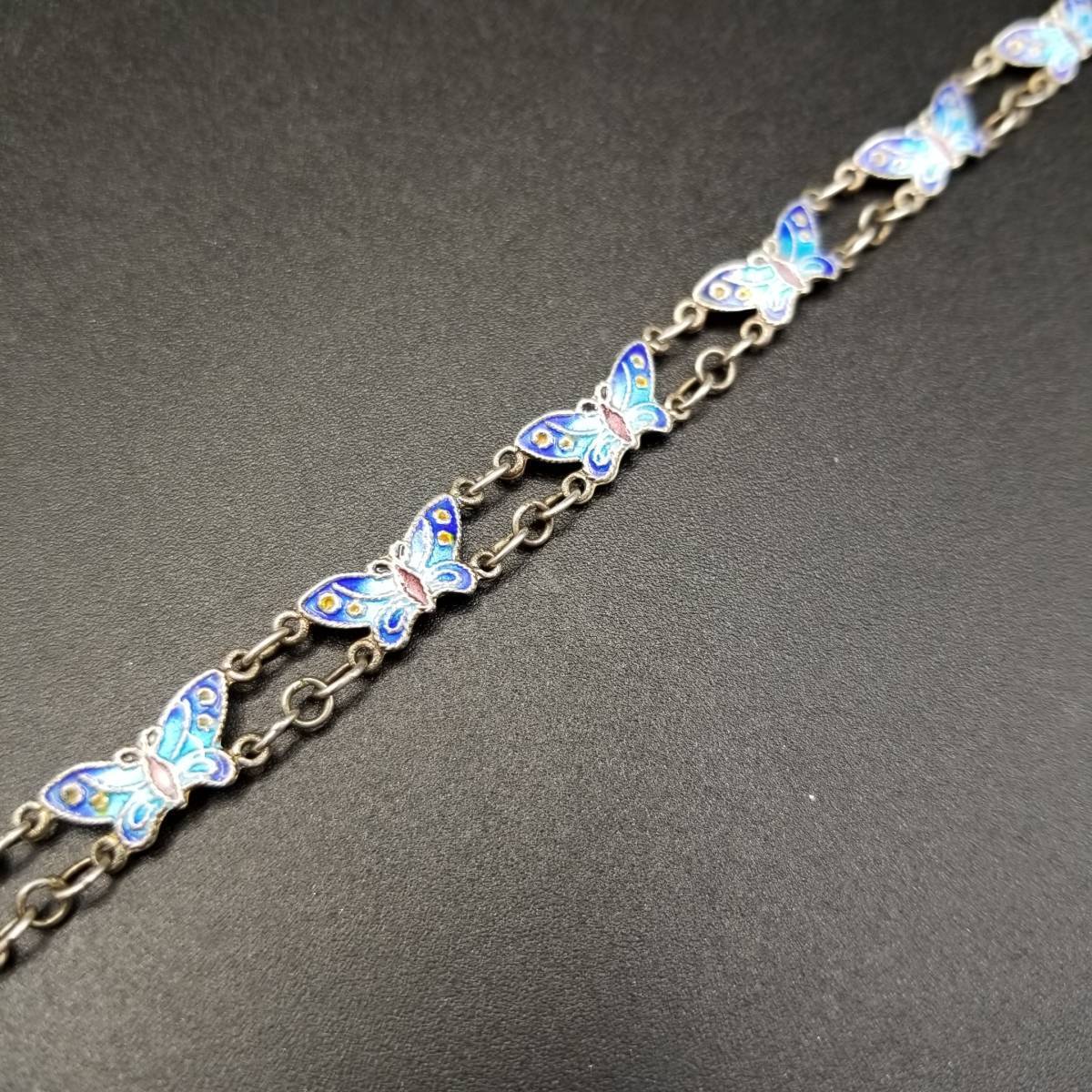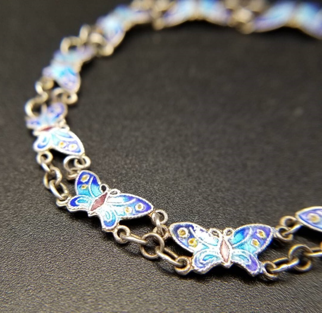 FAS 青い蝶 エナメル装飾 925 シルバー ヴィンテージ バタフライ ブレスレット 銀 レトロ 昆虫モチーフ Y13-F