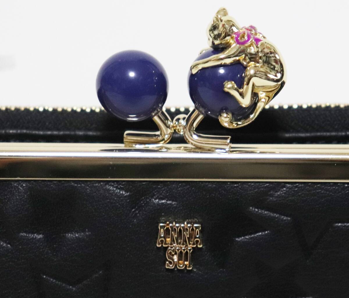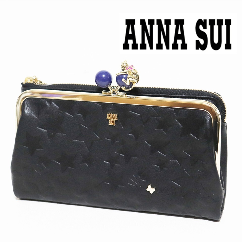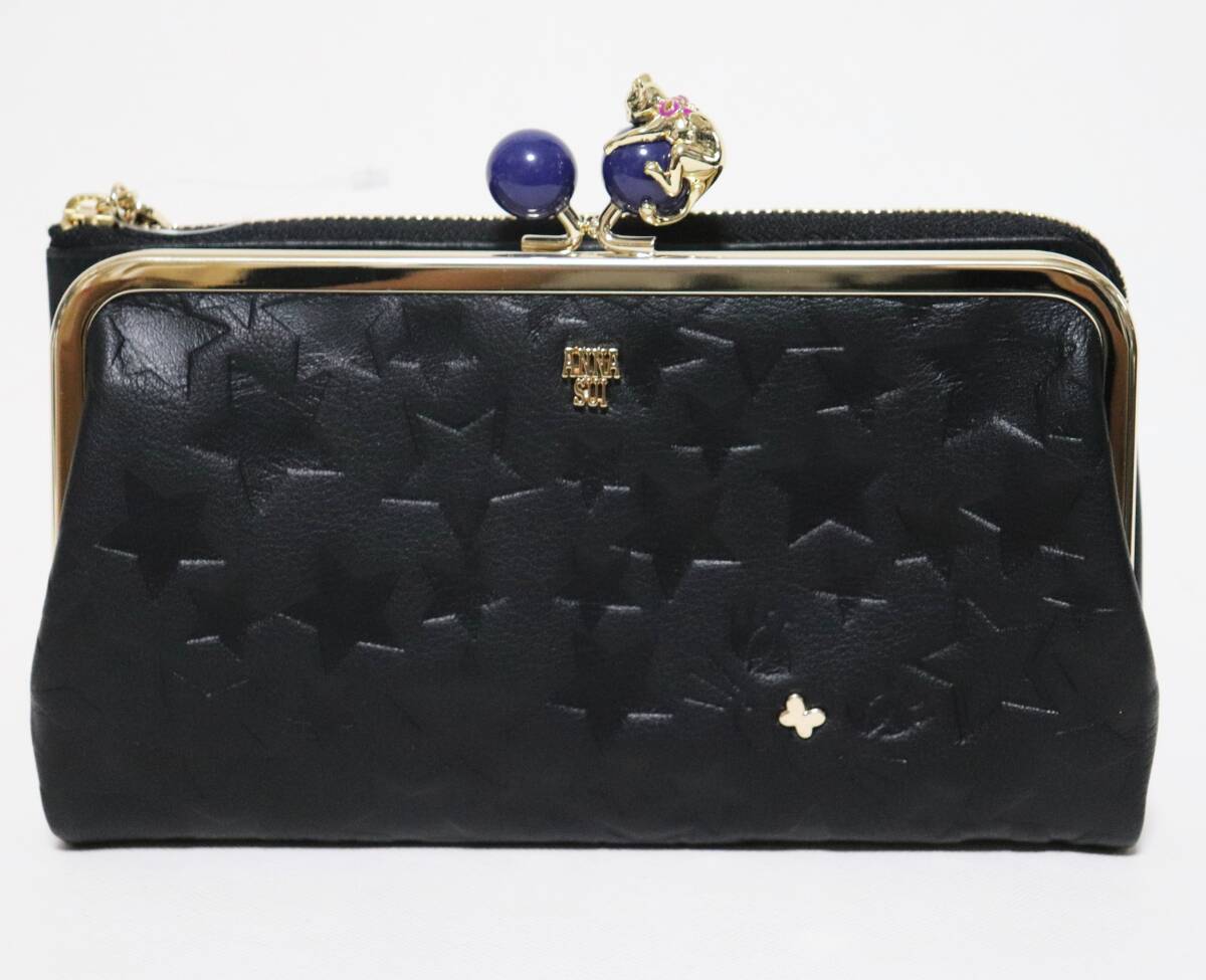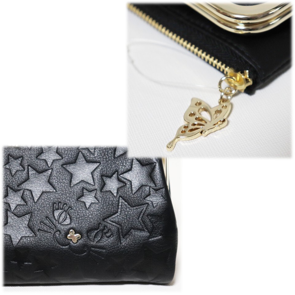| 《ANNA SUI アナスイ》新品【プレイングキャット】 可愛いネコちゃん 星型押しレザー 2つ折りがま口財布 口金 ウォレット S2041 |