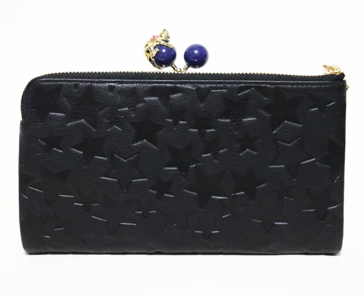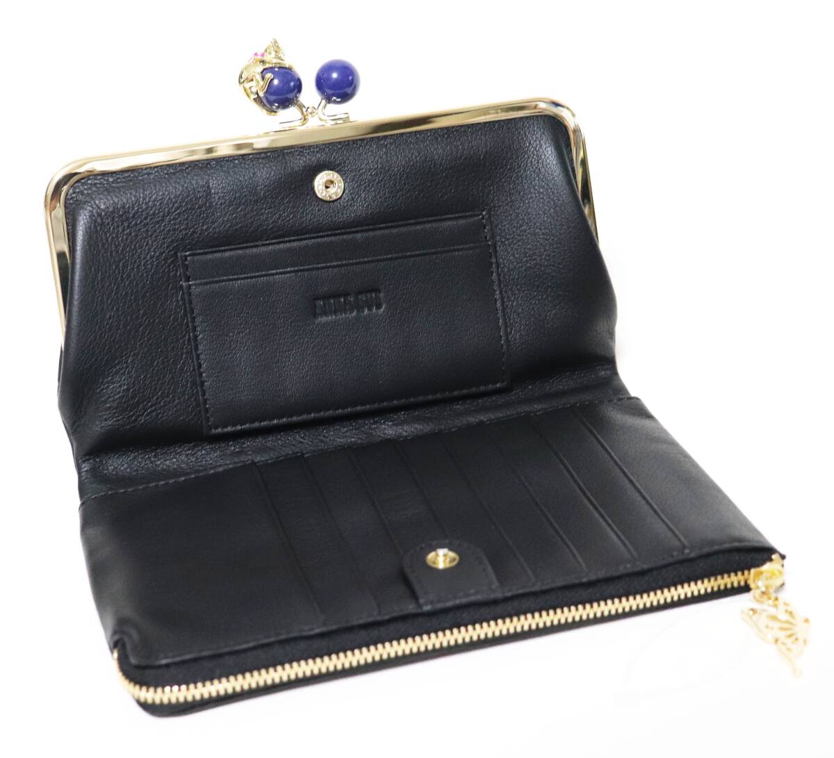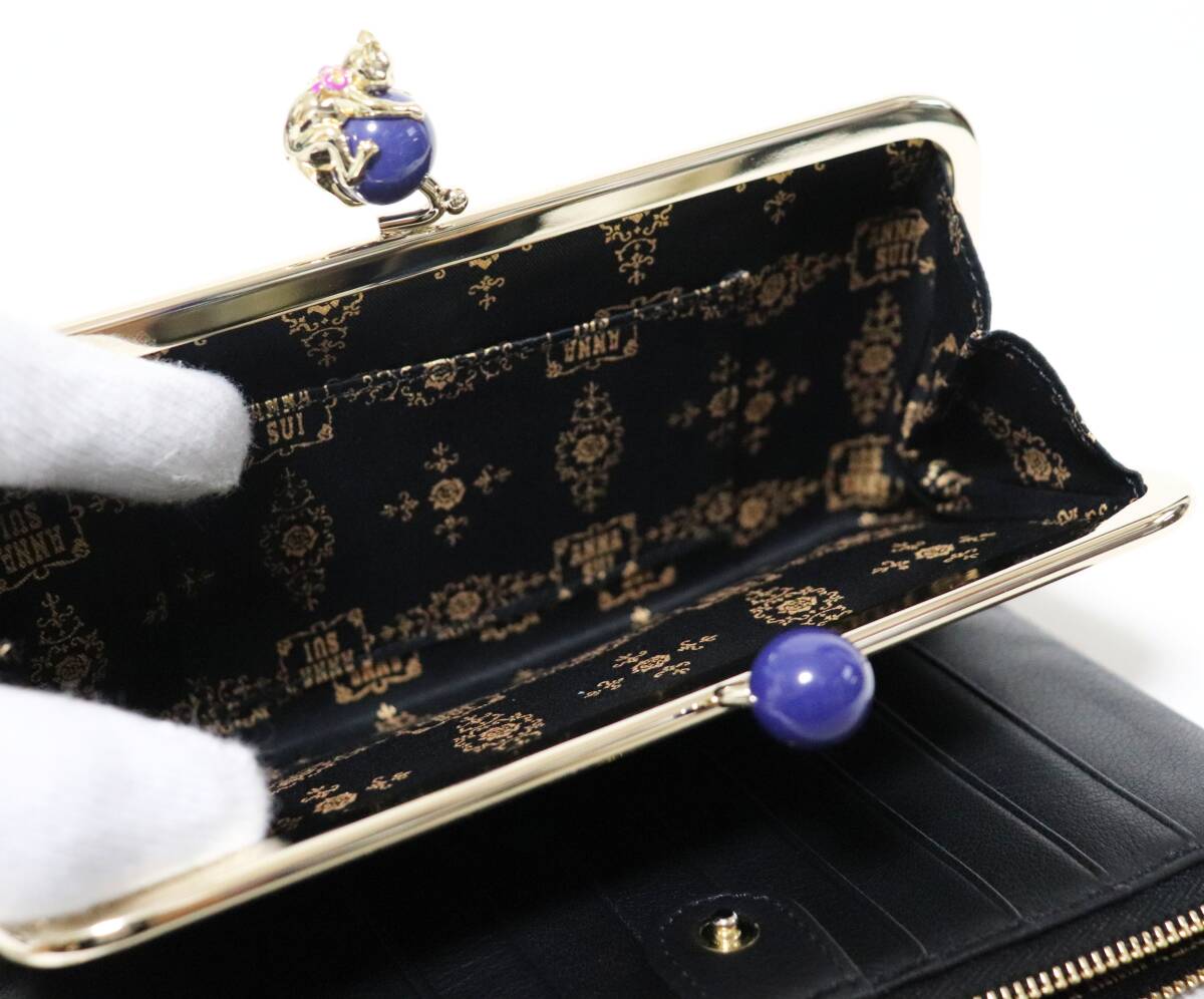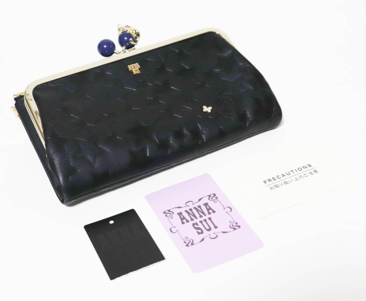 | 《ANNA SUI アナスイ》新品【プレイングキャット】 可愛いネコちゃん 星型押しレザー 2つ折りがま口財布 口金 ウォレット S2041 |