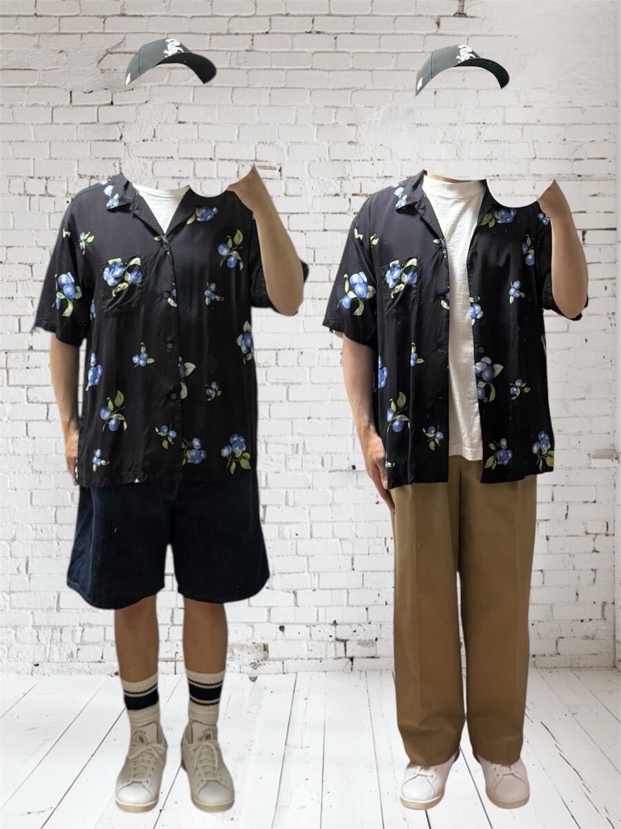 商品名 : モンキータイム BLUEBERRY柄 開襟シャツ