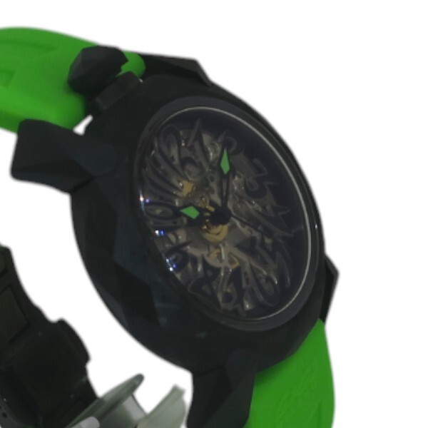 | カラー | 文字盤:スケルトン ケース:ブラック ベルト:ライトグリーン系 |