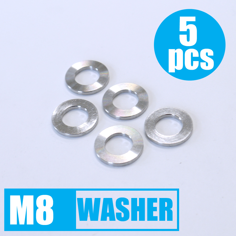 64チタン平ワッシャー M8 厚み1.7mm 外径15mm 5個セット ゆうパケット対応 焼き色なし Ti-6Al-4V