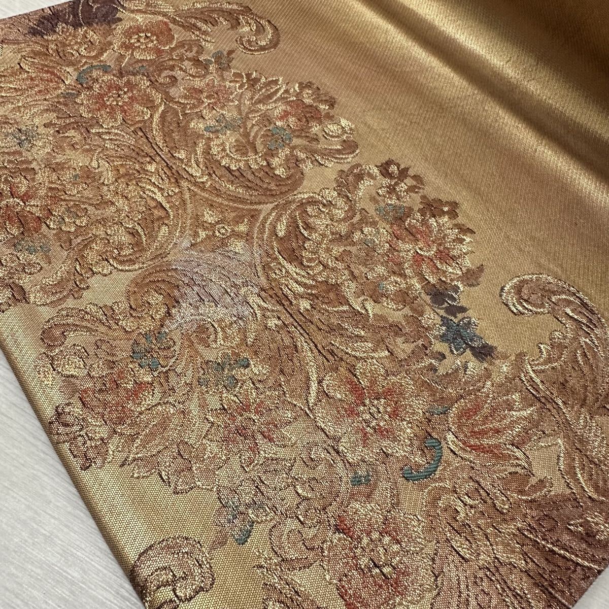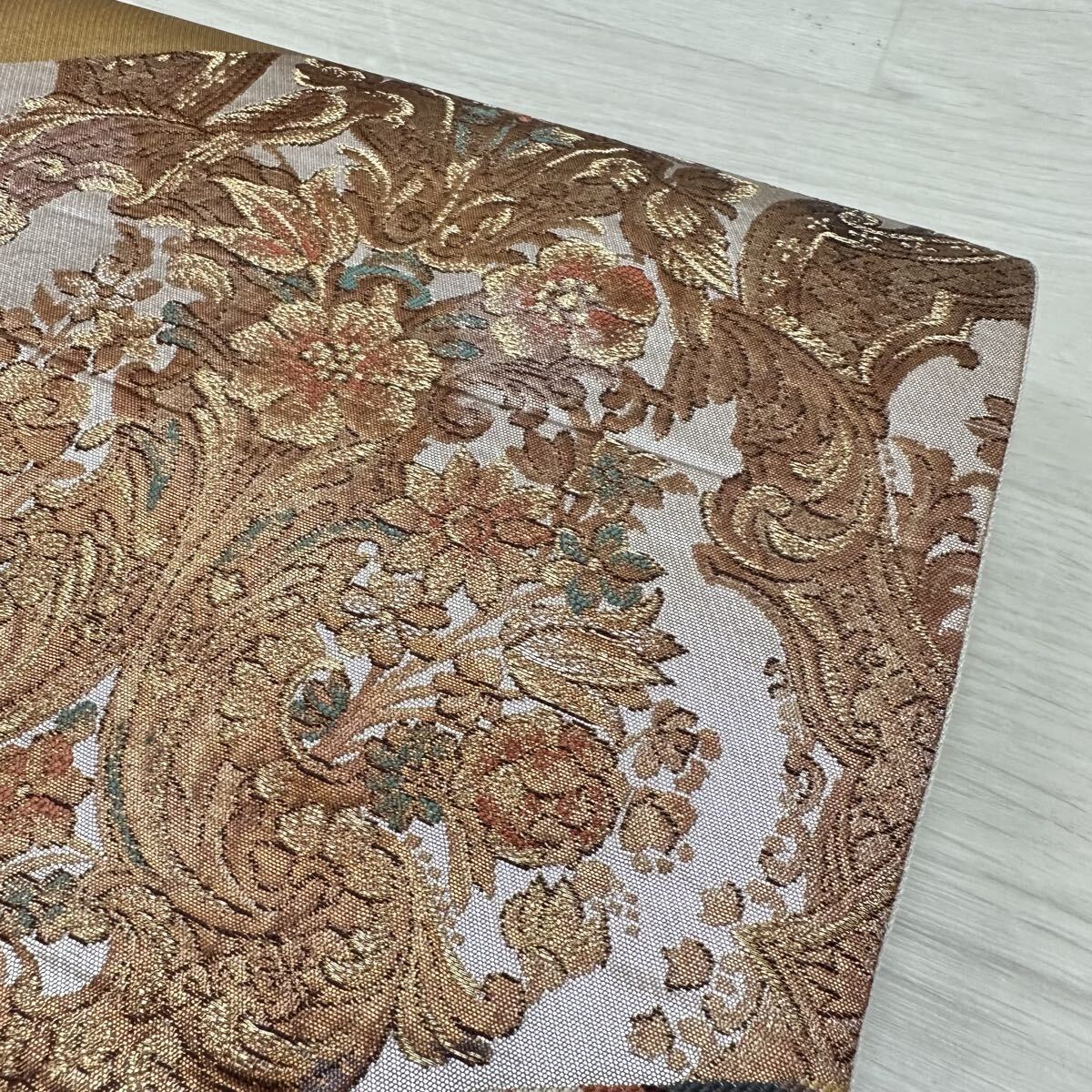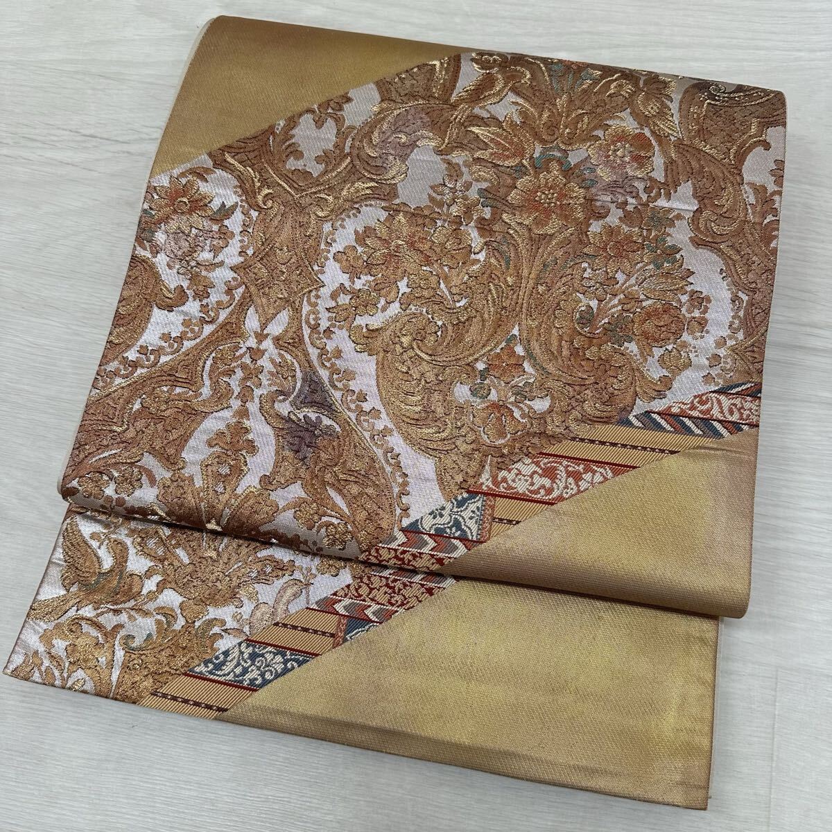 袋帯 花手 金唐革織 フランス・ロココ 美しい織出し 正絹 着物 W-4089