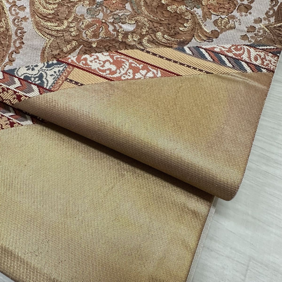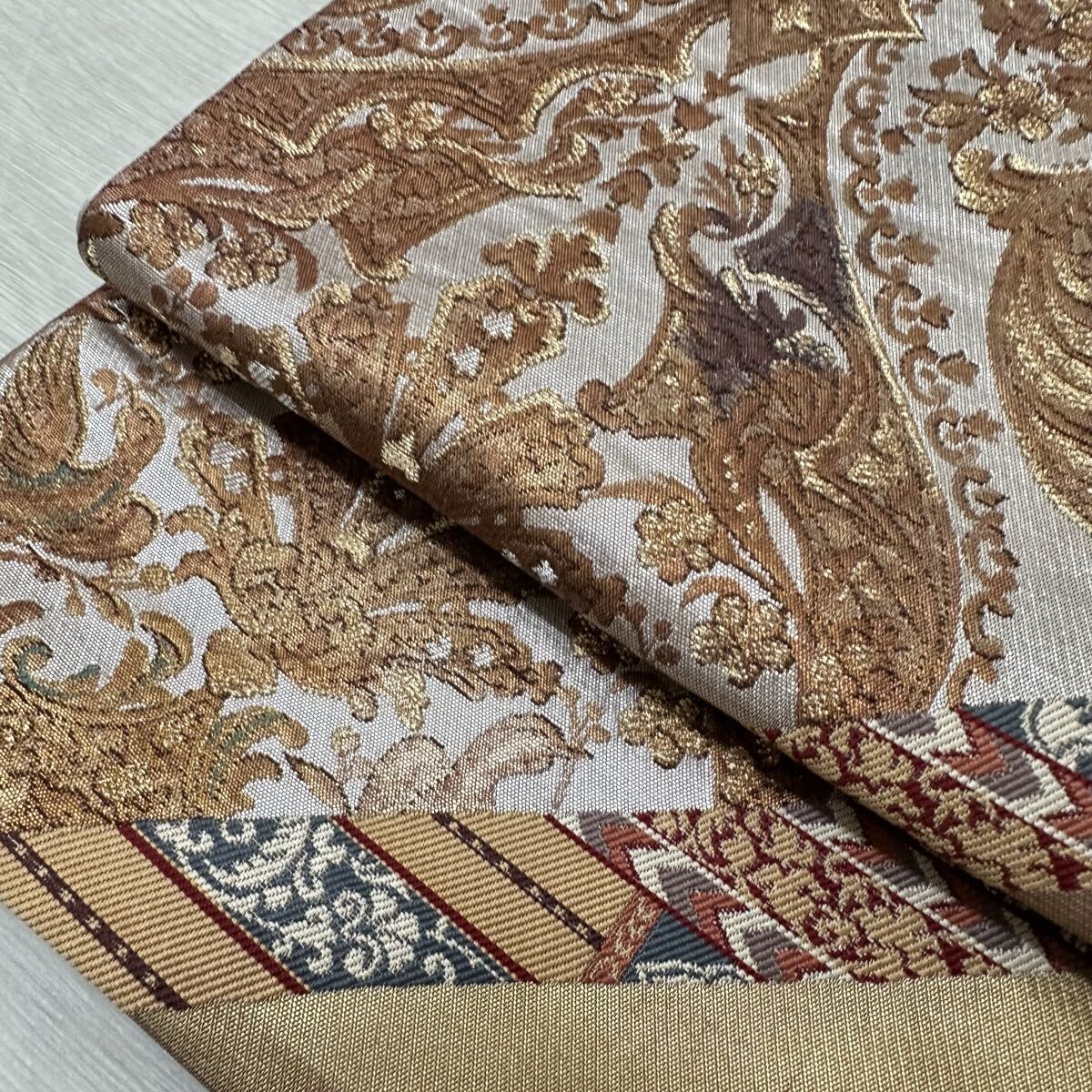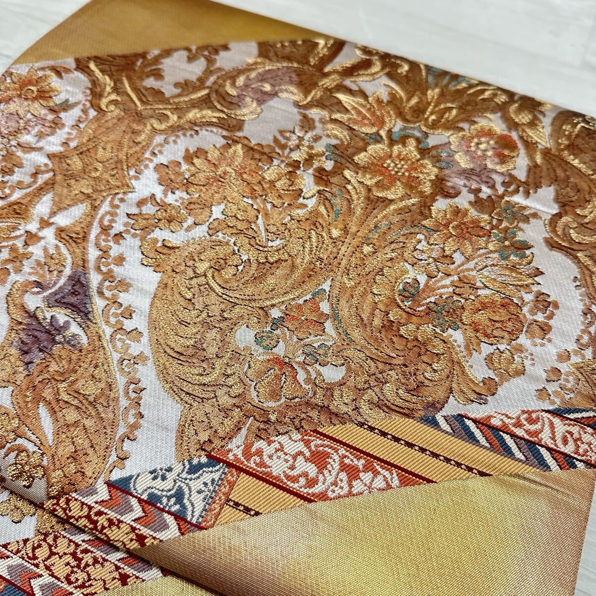 袋帯 花手 金唐革織 フランス・ロココ 美しい織出し 正絹 着物 W-4089