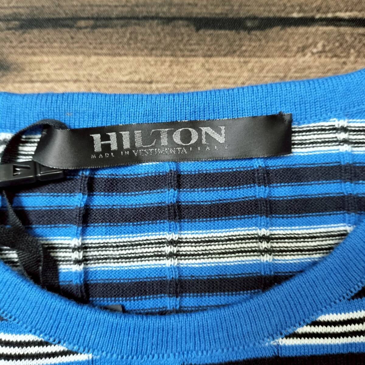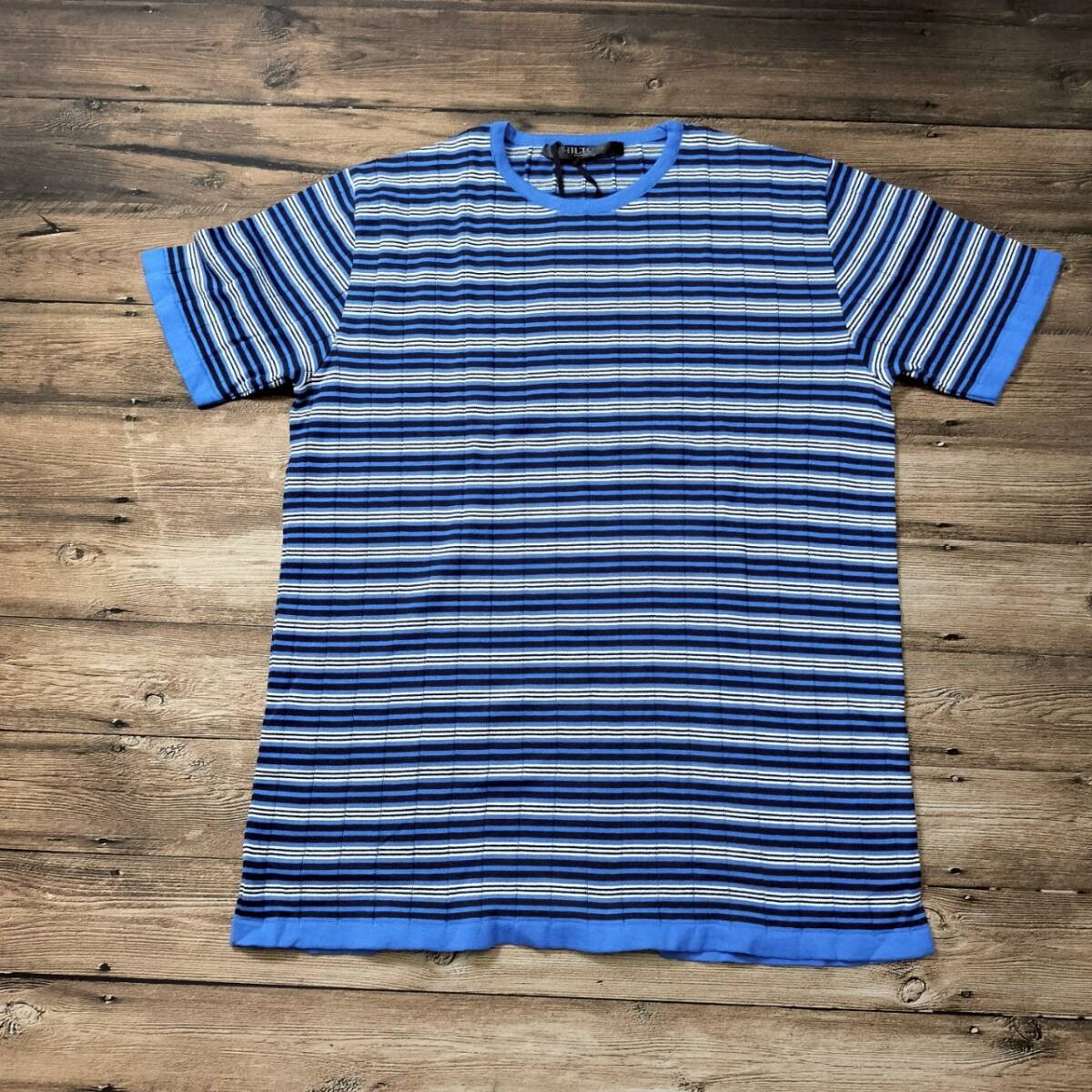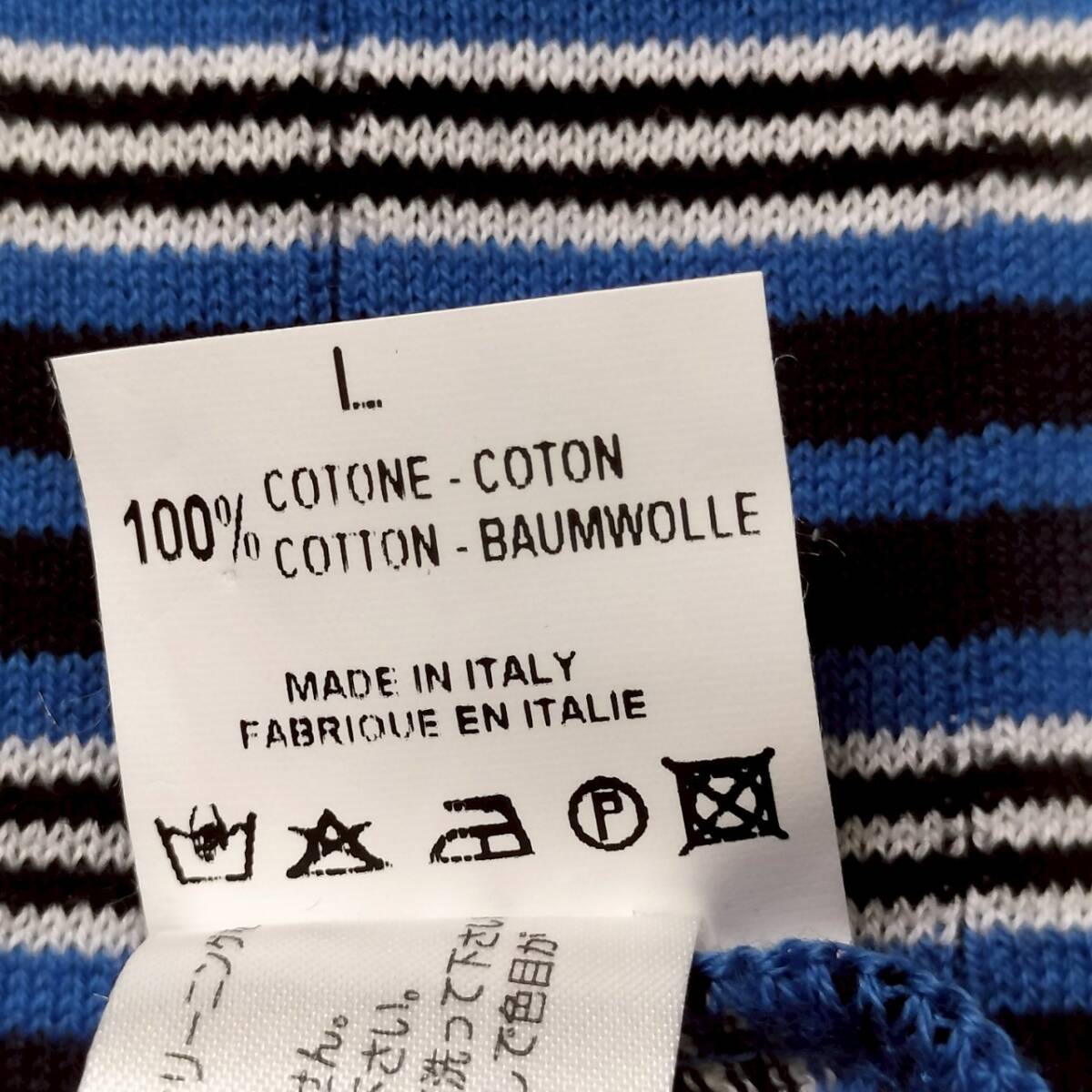 外箱付未使用 タグ付 イタリア製 ELL GARION エルガリオン メンズ セーター 薄手 Tシャツ ボーダー柄 コットン100% ブルー Lサイズ 半袖