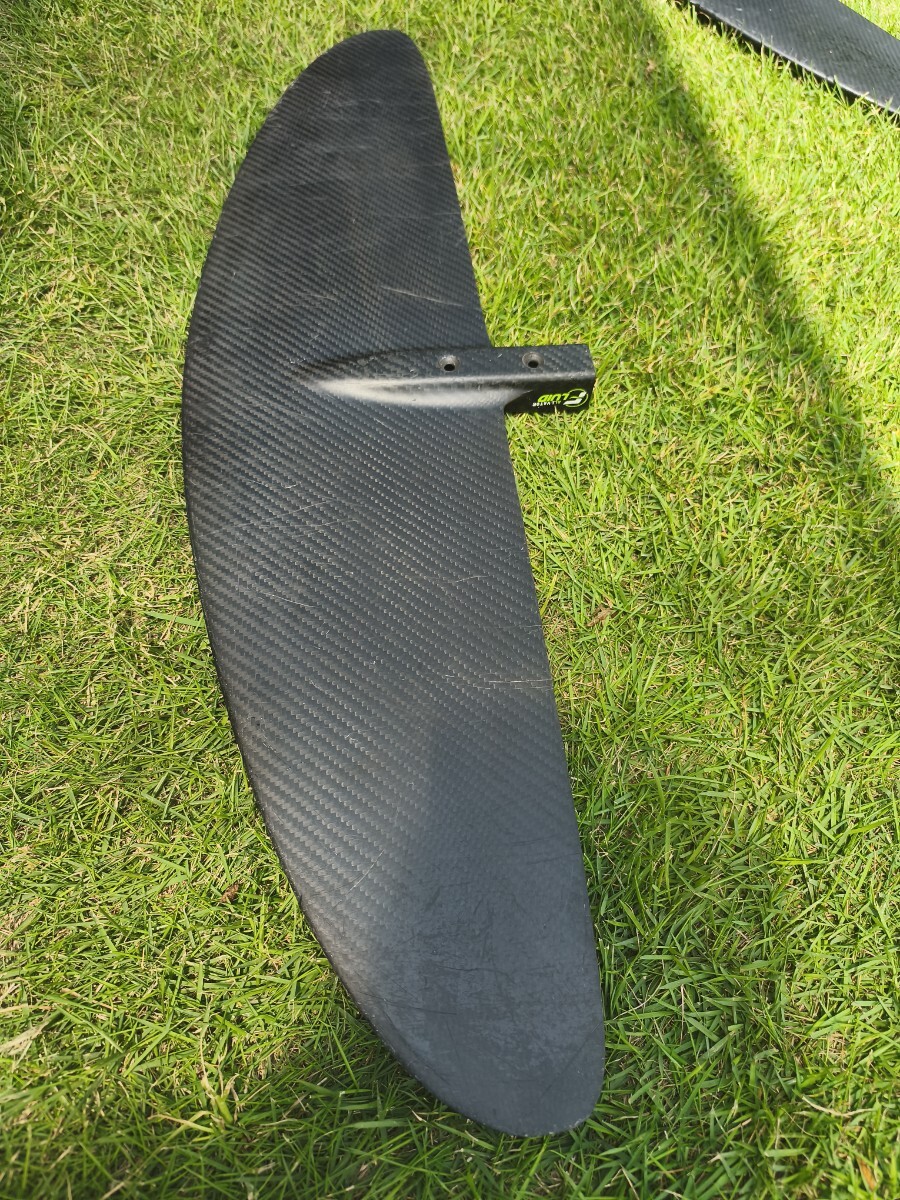 フォイル面積1100cm2スパン 76cmの ミドルアスペクトに近いものになります。初級者がステップアップのためにサイズを下げるに適したサイズになります。サイズを小さくすることにより ビードも出るようになります。大きな傷はありませんが 擦れた後はたくさんあります。使用上は特に問題ありません。