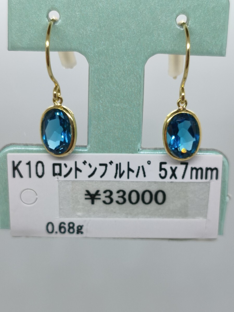 K10 ロンドンブルートパーズのフックピアスです。