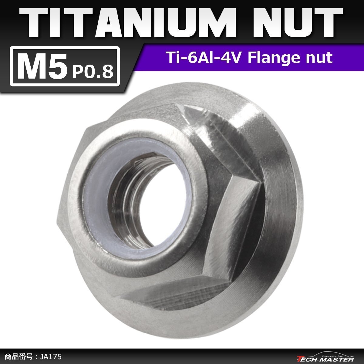 六角ナット アクスルナット フランジ付き 金属の中でも軽量、高剛性、対候性に優れた64チタン合金(Ti6AI-4V)を採用。 ゆるみ止めのナイロンリングを内蔵し、振動等によるナットのゆるみを軽減 ※ナイロン部品を使用しているため、高温になる場所でのご使用はお止めください。 |