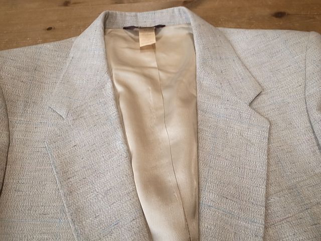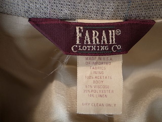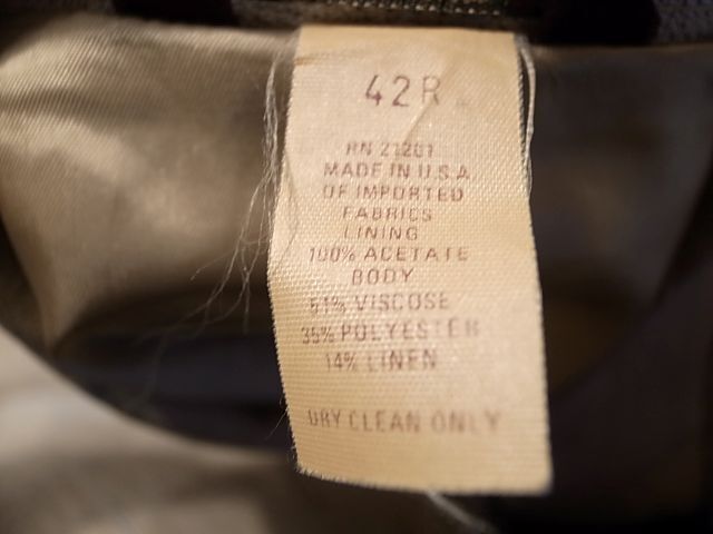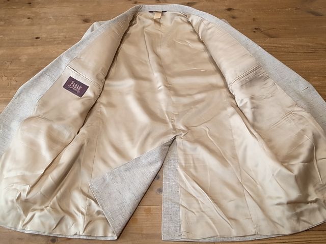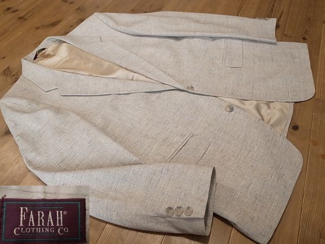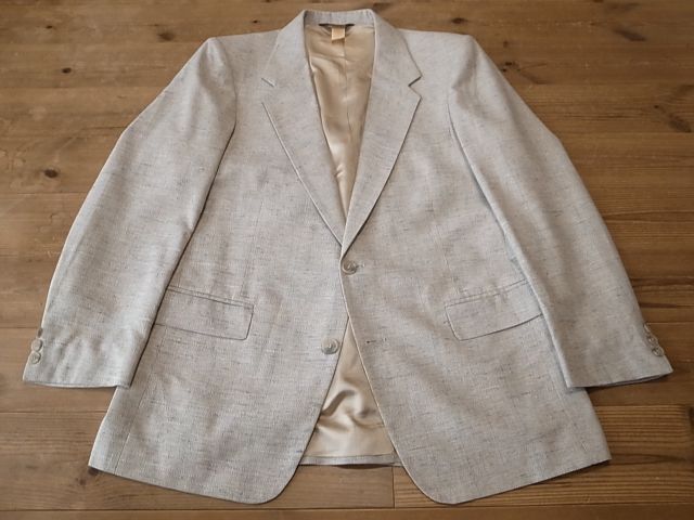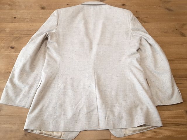 ◆ブランド 「FARAH」 アメリカ古着 ●サイズ表記 42R 実寸サイズ L相当 肩幅…46cm(肩先から肩先の間の長さ) 身幅…56cm(両脇を横直線に結んだ長さ) 着丈…76cm(後衿ぐり中央から後身頃裾) 袖丈…63cm(袖付けの肩先から袖先) ※平置き状態での素人採寸ですので、多少の誤差はご了承ください。 ●素材…51%VISCOSE 35%POLYESTER 14%LINEN 春夏向き ●色…ベージュ系 ●ポケット… フラップポケット ●裏地…総裏仕立て ●ベント…センターベント ●製造国表記…USA ●状態…使用感は少ない美品です。 ★送料 全国一律 700円 佐川急便 (北海道900円 沖縄その他離島1700円) ※複数ご購入の場合、同梱発送可能です。 |