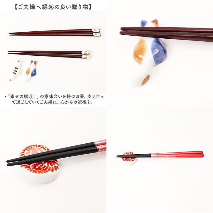 | 商品説明 | ・・【新しい門出のお祝いにぴったり】 ・新生活のスタートに。食卓を彩る箸置付きの「桐箱夫婦箸ギフトセット」。 ・【ご夫婦やカップルでお揃いに】 ・カラーとサイズの異なるお箸&箸置きのセット。2人仲良く使えて、毎日の食事がもっと豊かに。 ・【高級感のある桐箱入りギフト】 ・ナチュラルで美しい桐箱。特別感のある、上質な仕上がり。 ・【職人技が光る!伝統の若狭塗箸】 ・福井県小浜市で生産される伝統工芸品の漆器の技法を。風合いのある天然木と素敵にマッチ。 ・【表面塗装済みで毎日使いに最適】 ・お箸は天然木の素地に表面塗装を施しているから、汚れや傷がつきにくい!デイリーに活躍。 ・(※1)カラーにより塗装の種類が異なります。食洗機対応についても、カラーにより異なります。 ・【食材が滑りにくくしっかりキャッチ】 ・箸先には滑り止め加工済み。麺類などもつかみやすく、快適な食事をサポート。 ・(※2)ねこづくしは溝のない滑り止め加工です。 ・【アクセントになる箸置き】 ・お箸と相性抜群な箸置き。食卓が華やかに、ワンランクアップ! ・【ご夫婦へ縁起の良い贈り物】 ・・「幸せの橋渡し」の意味合いを持つお箸。支え合って過ごしていくご夫婦に、心からの祝福を。 |