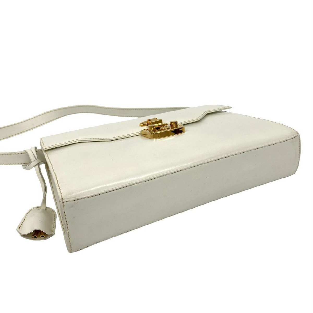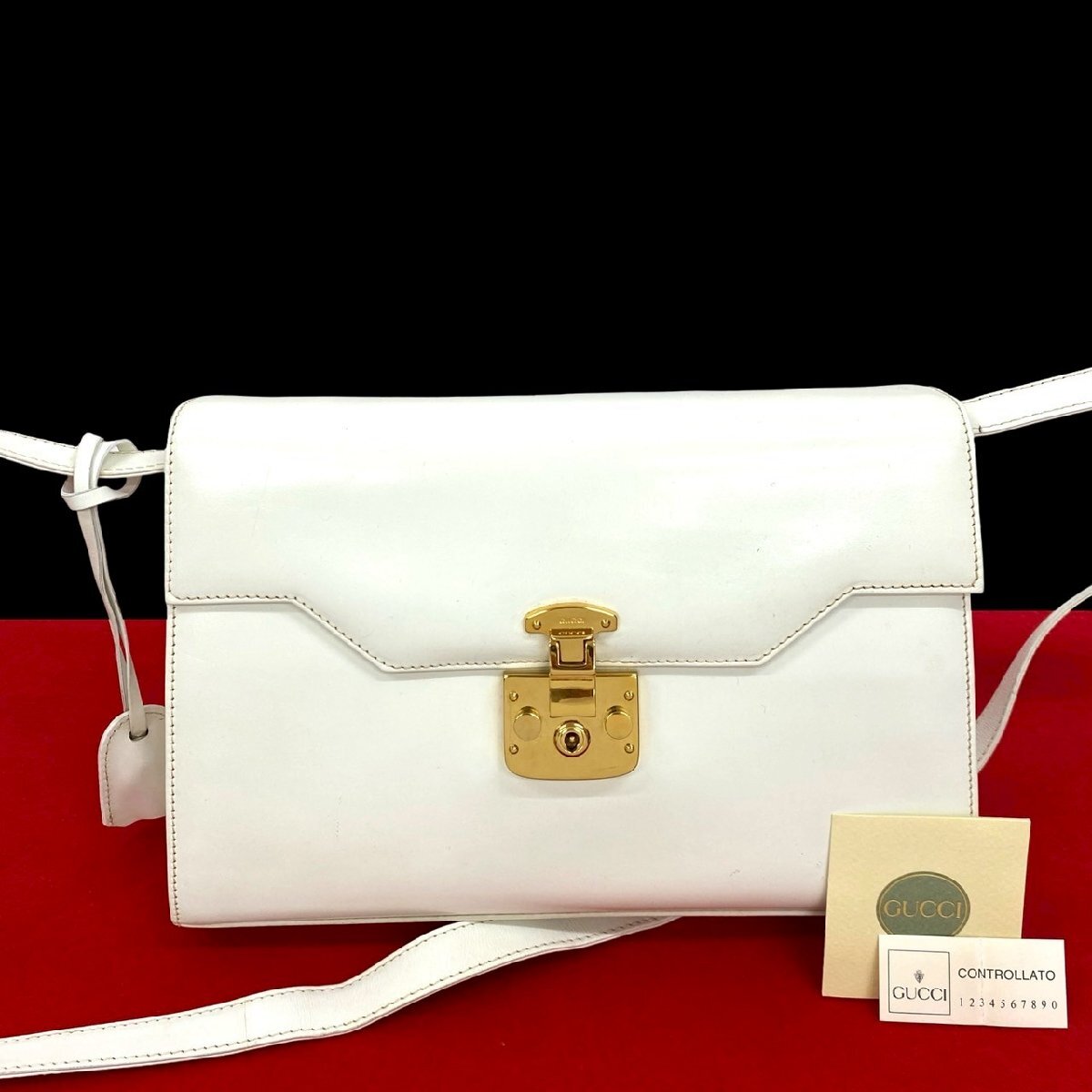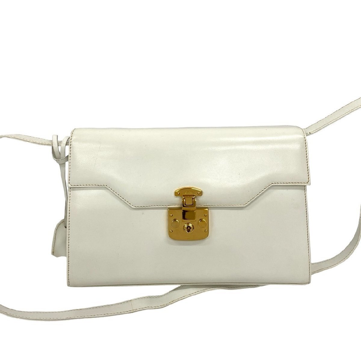 極 美品 鍵付き GUCCI グッチ オールドグッチ ヴィンテージ レディロック カーフ レザー 本革 ショルダーバッグ ポシェット ホワイト 27489