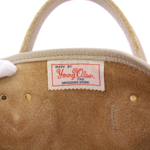 ヤングアンドオルセン YOUNG & OLSEN レザートート ハンドバッグ ロゴ プリント グレージュ 52-62-0113-110 /BB レディース