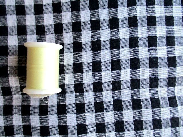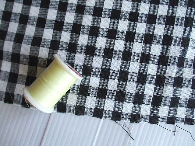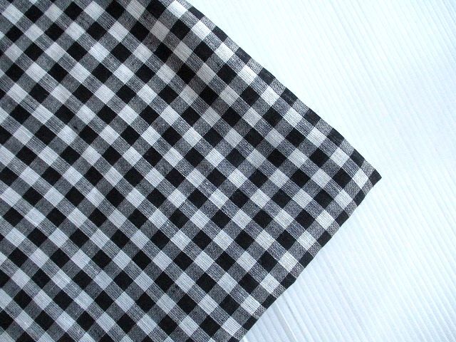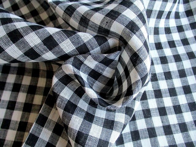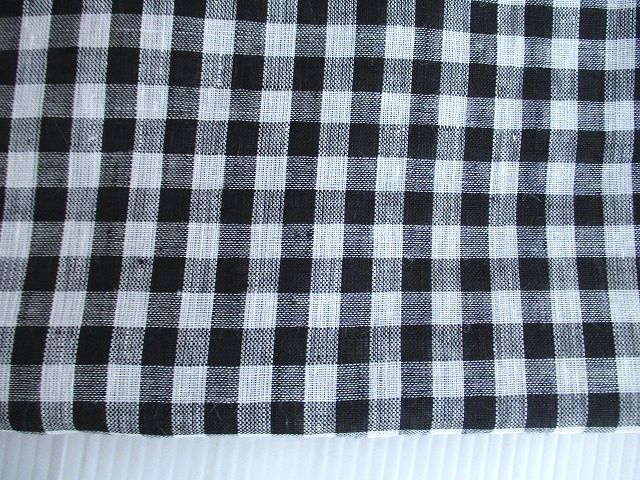 | リネン麻100%★黒×白ギンガムチェック生地*W生地幅 | |||