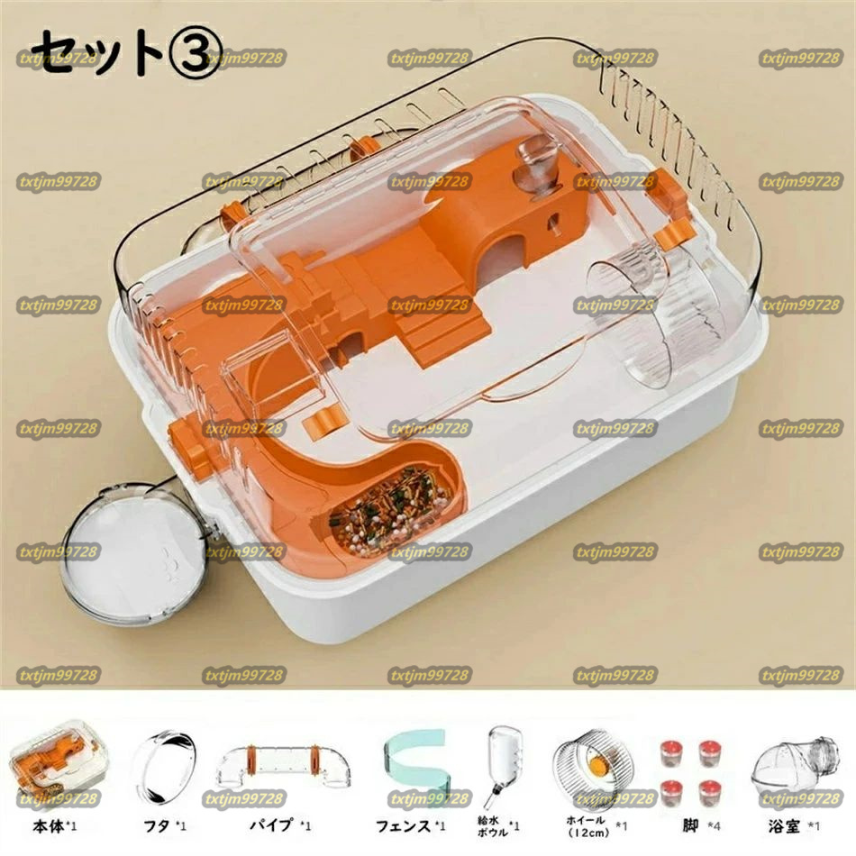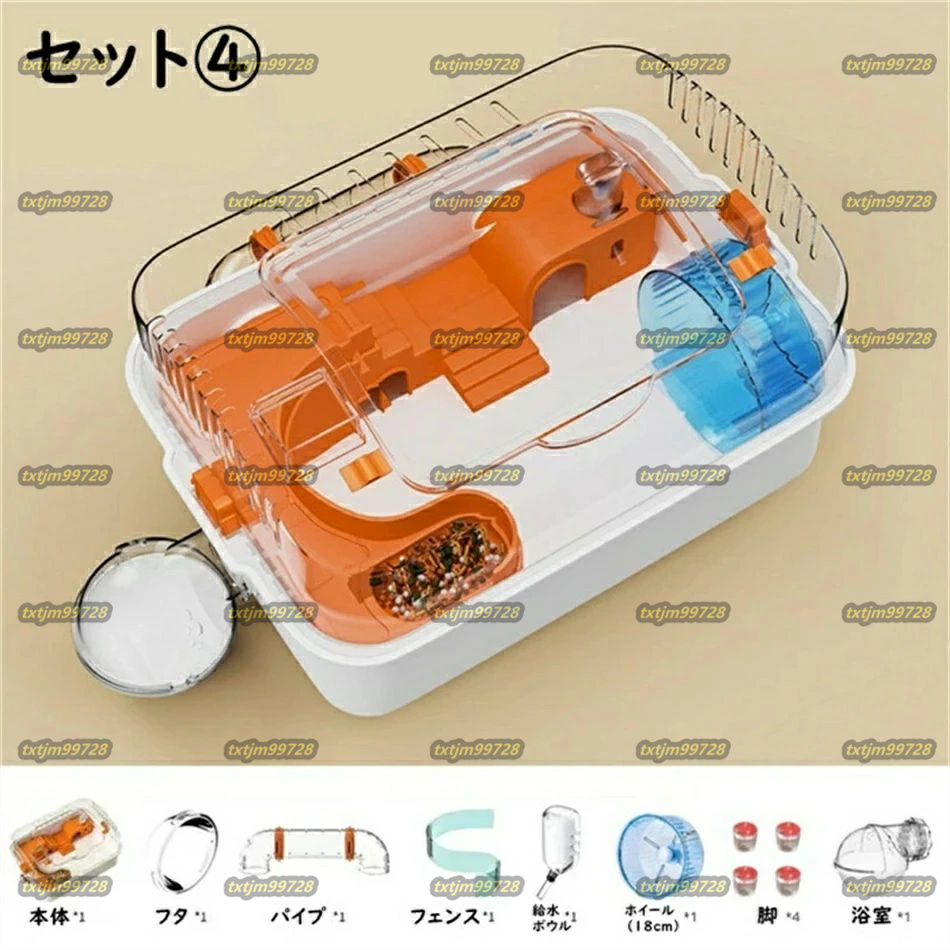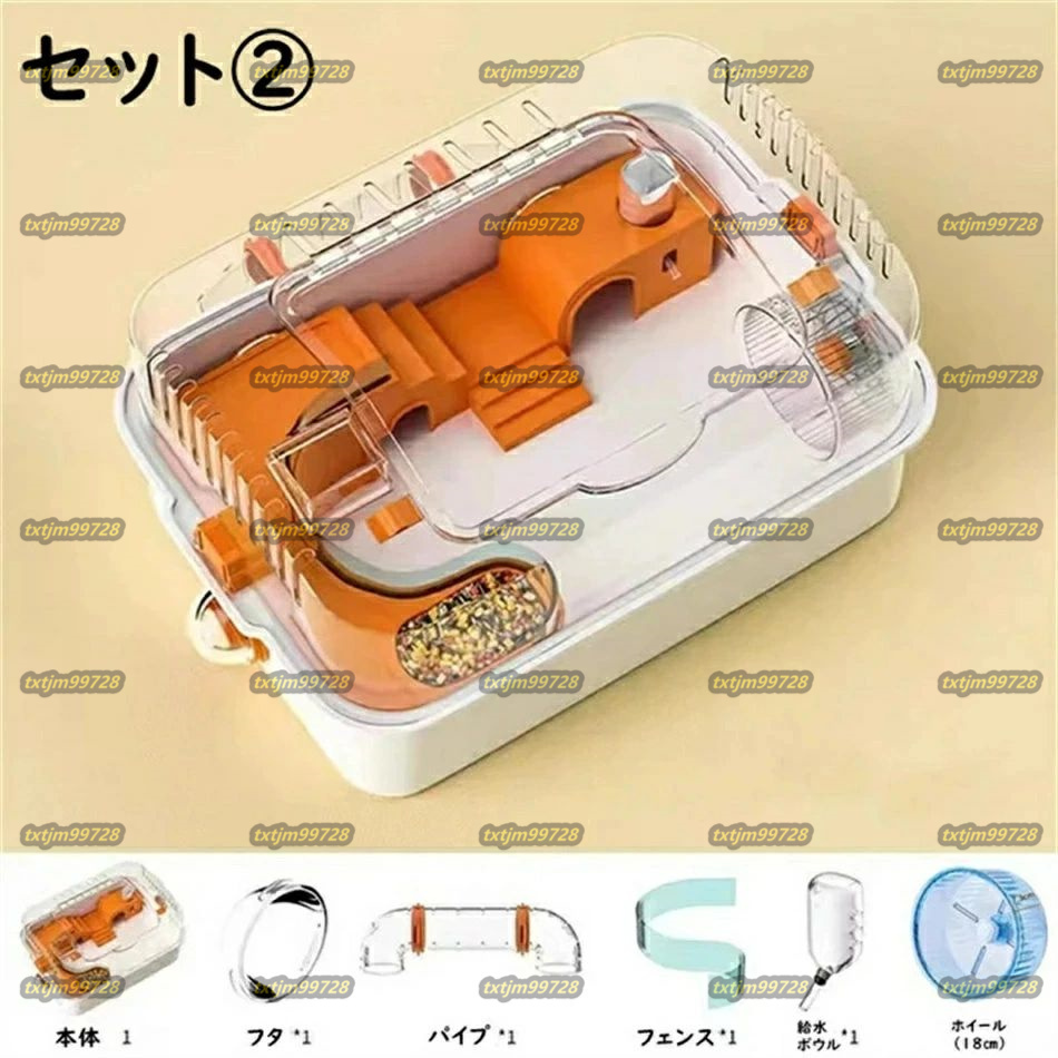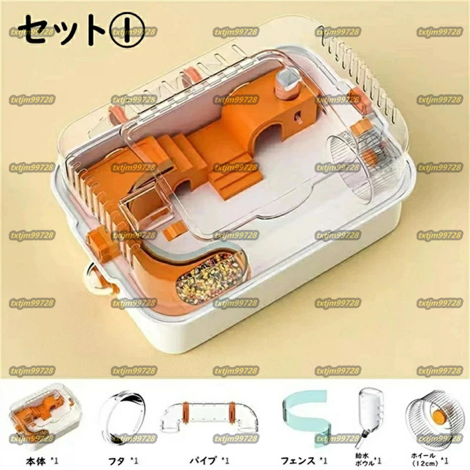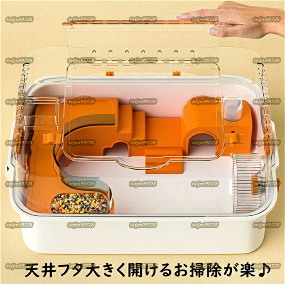 小動物ケージ ハムスターケージ ハムスターケース 飼育ケース ボックス クリア 天井扉 観察しやすい パーツ分解 丸洗い ホイール エサ皿