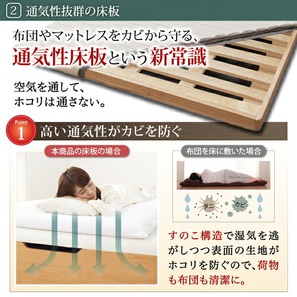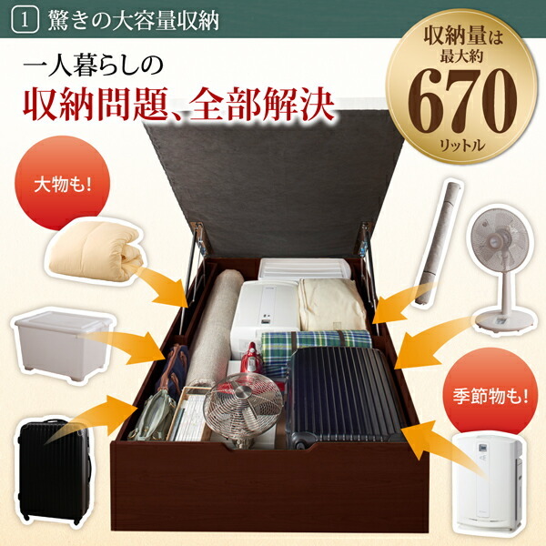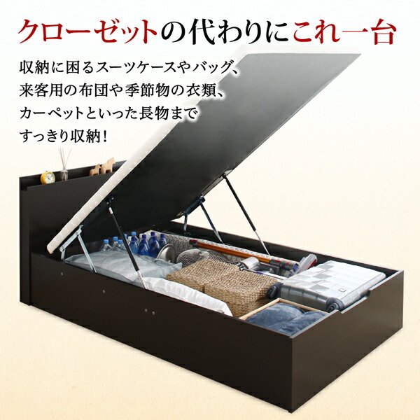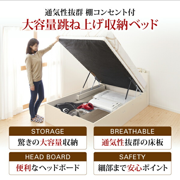 お客様組立 通気性抜群 すのこ構造 棚コンセント付 跳ね上げベッド スタンダードボンネルコイルマットレス付き シングル 深さラージ