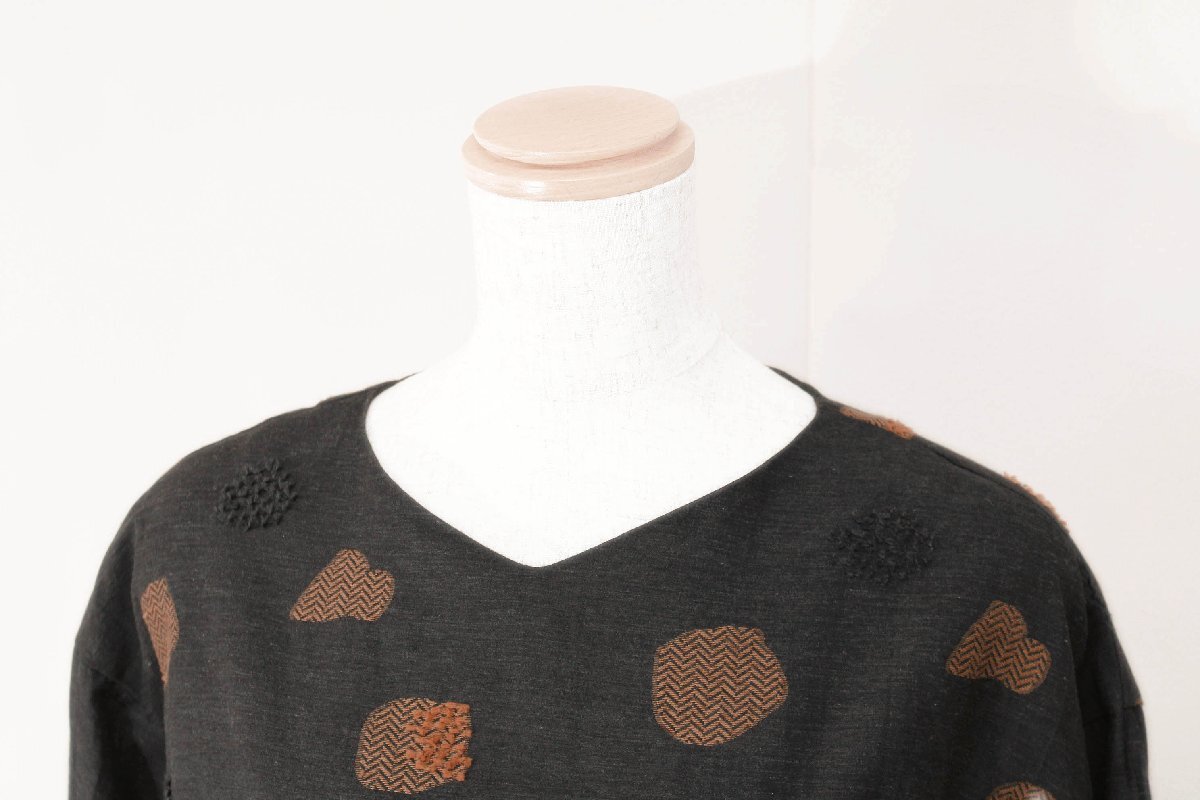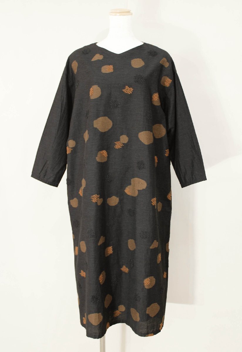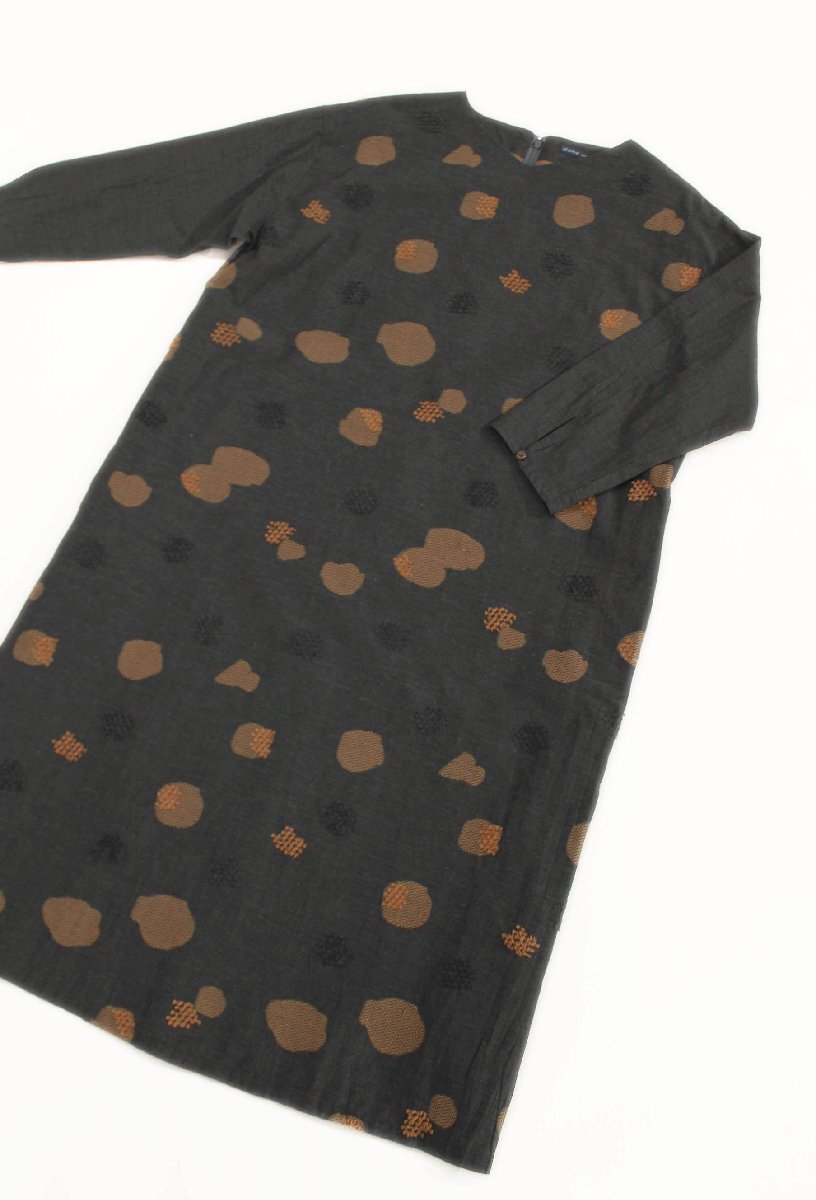 numeヌメ/パラスパレス/サークル柄ジャガード長袖ワンピース:3/チャコール系yx408