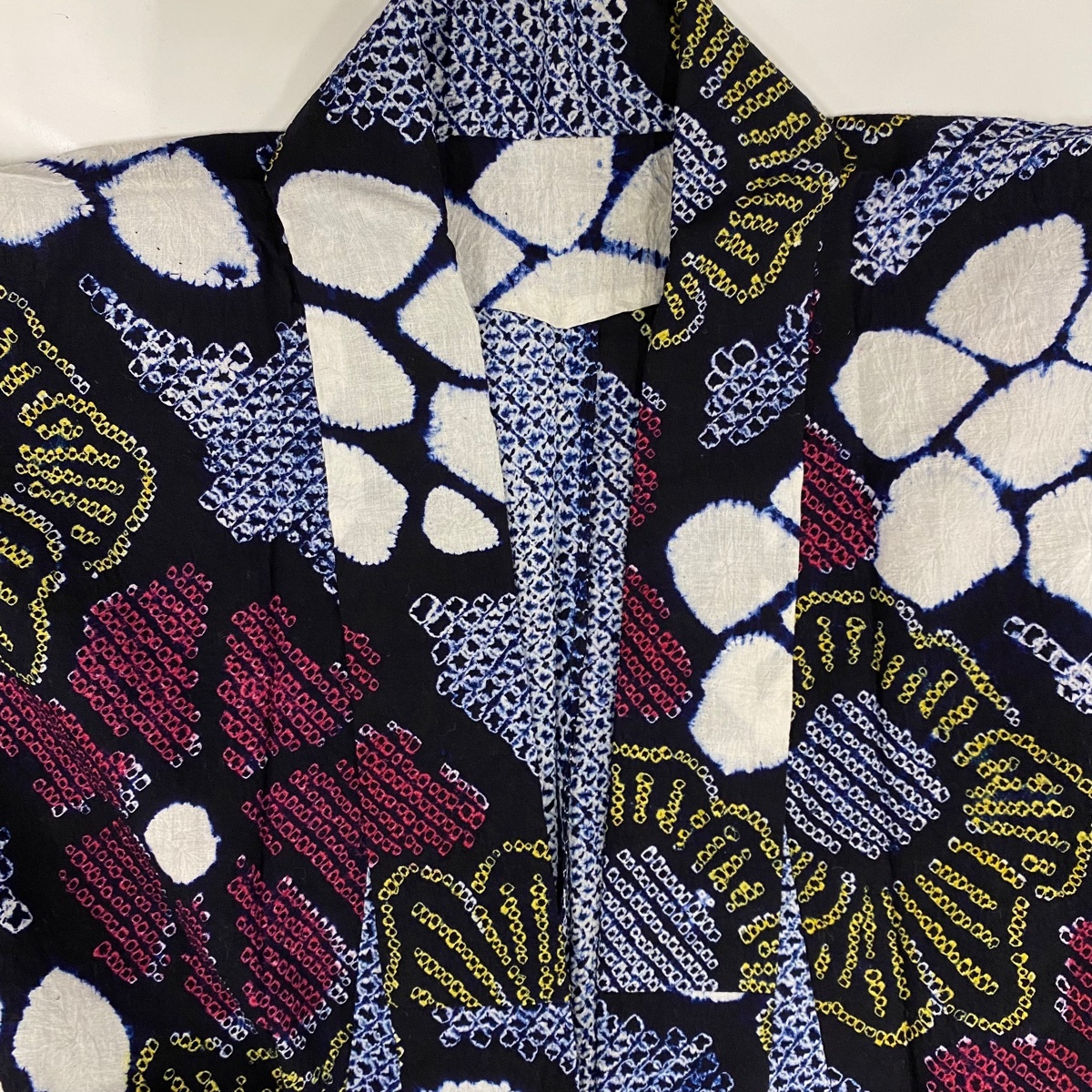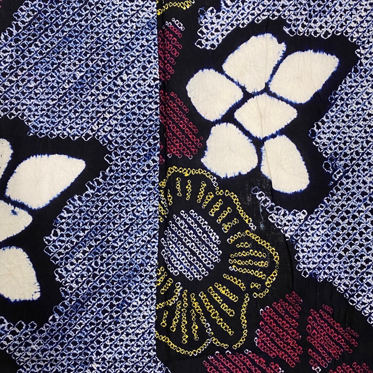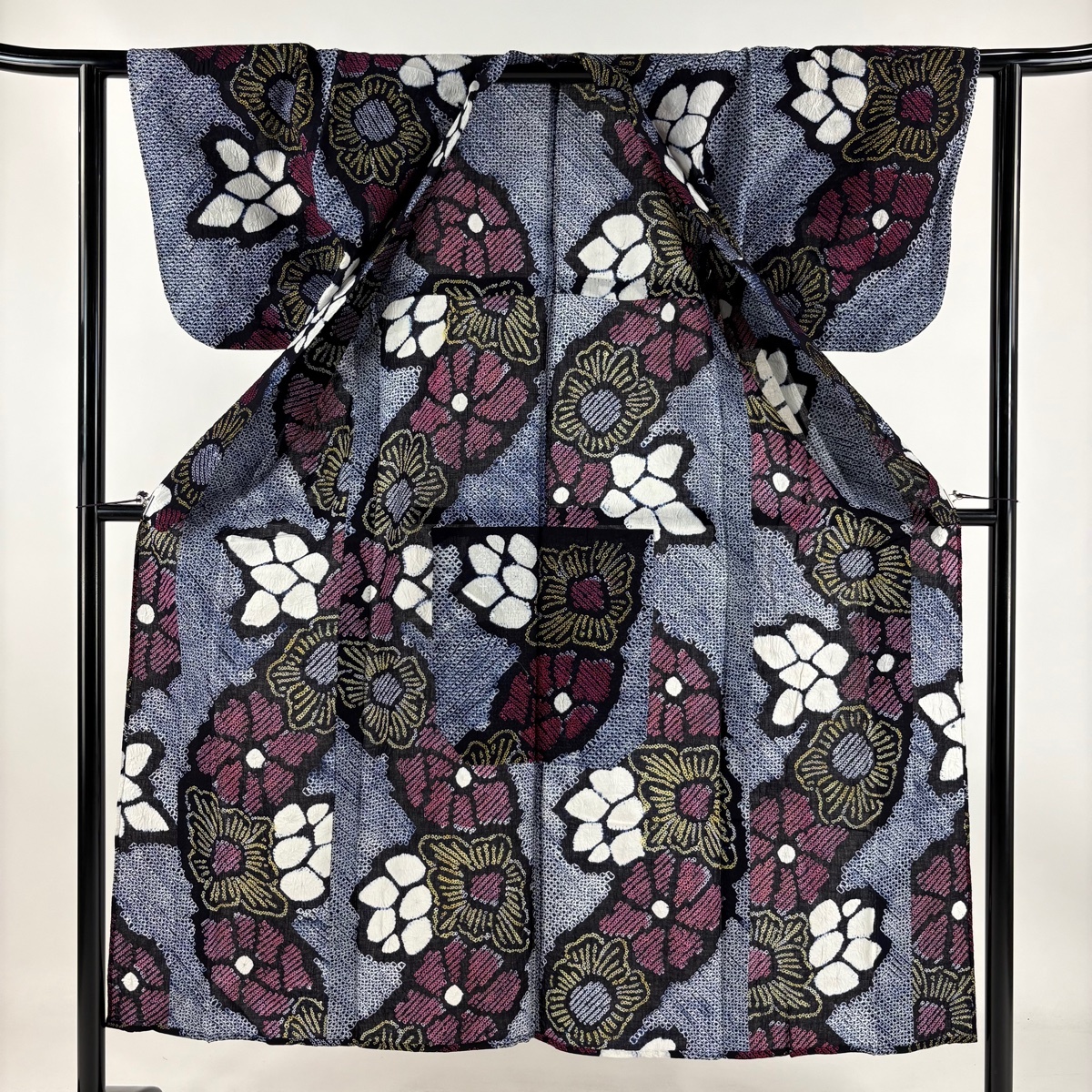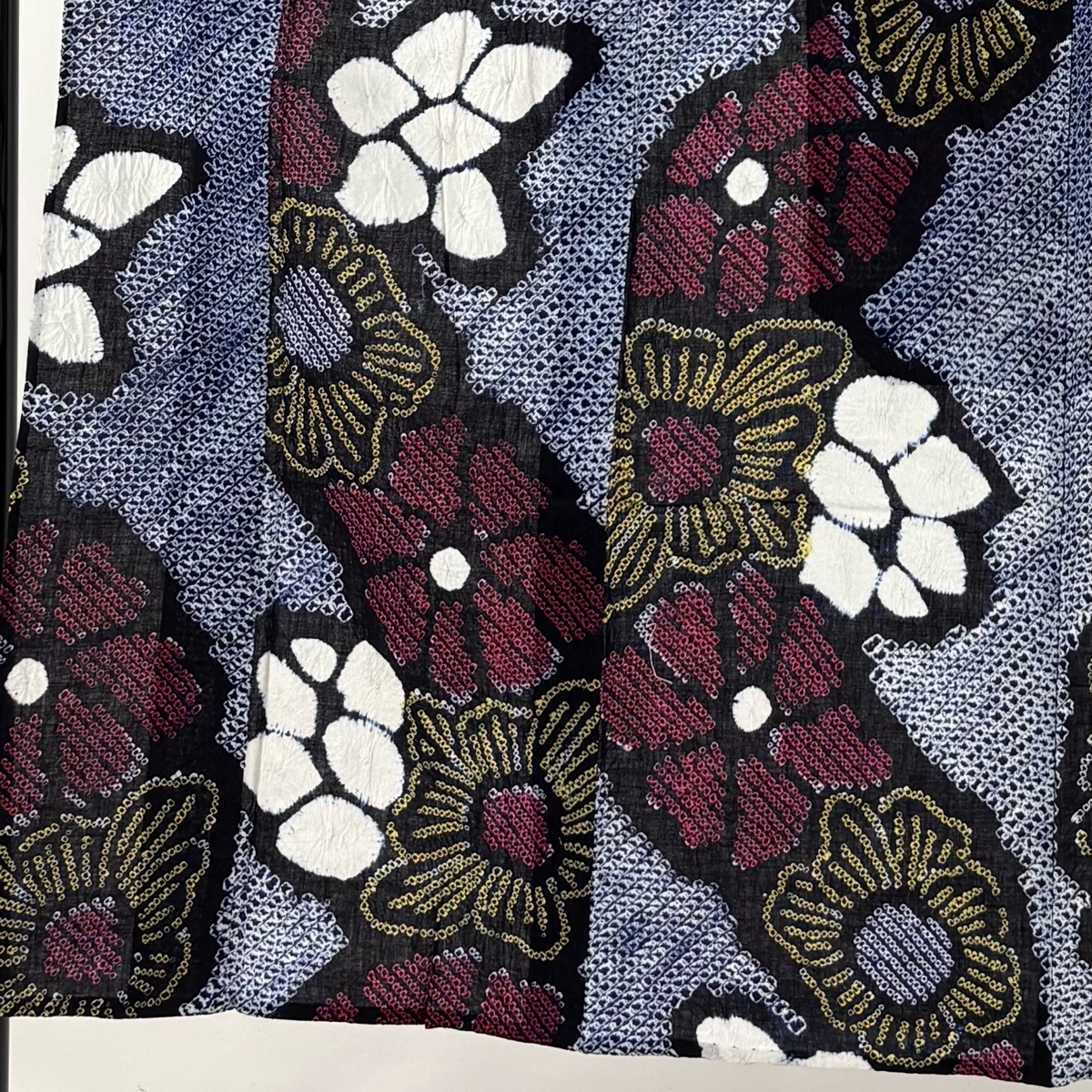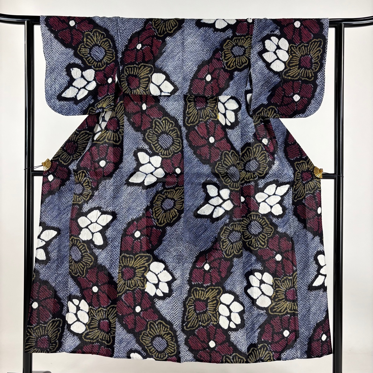| 浴衣 名品 絞り浴衣 草花 濃紺 身丈149 裄丈61 S 綿 【中古】 |