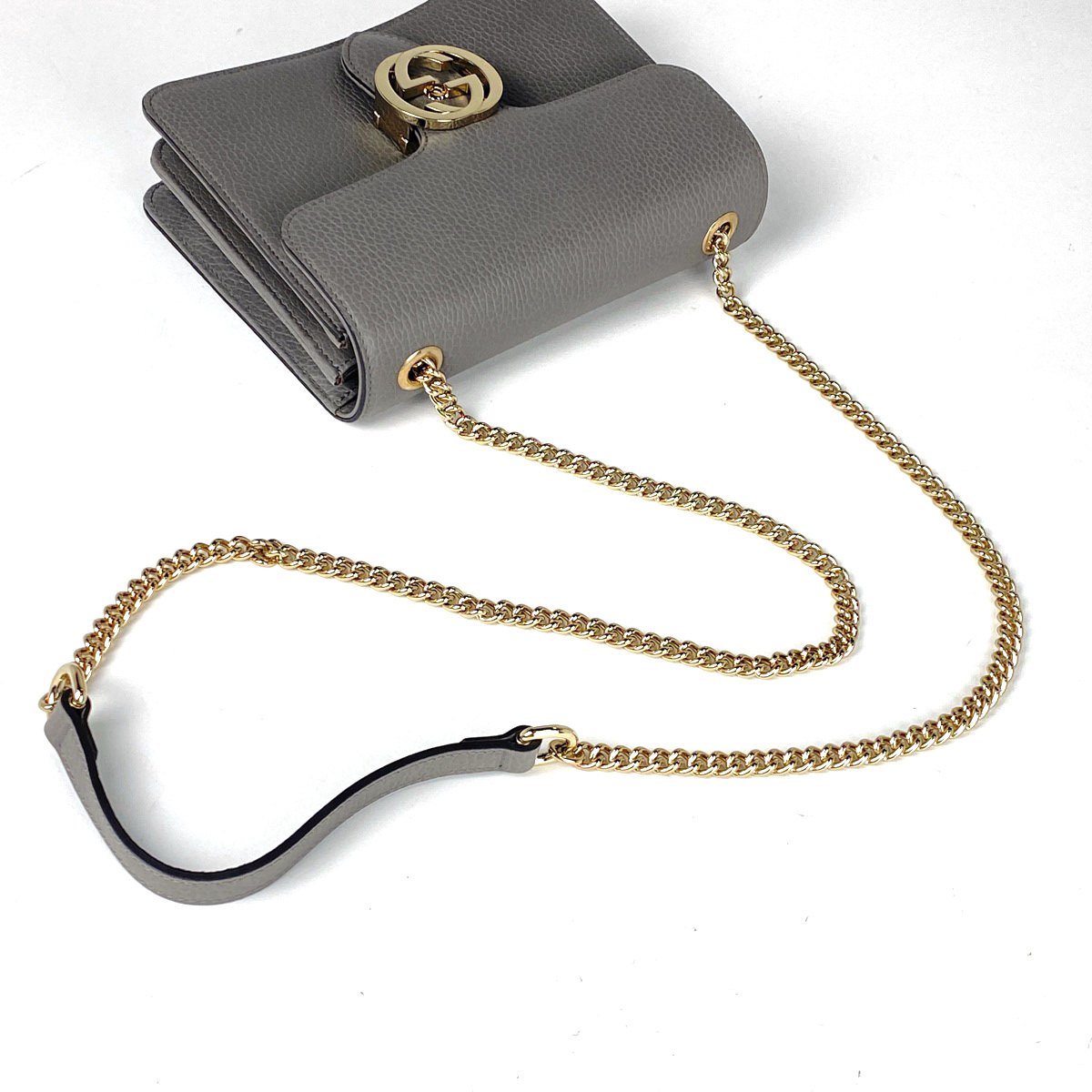 | グッチ GUCCI インターロッキングG チェーン ショルダーバッグ 斜め掛け ショルダーバッグ レザー グレー 510304 レディース 【中古】 |