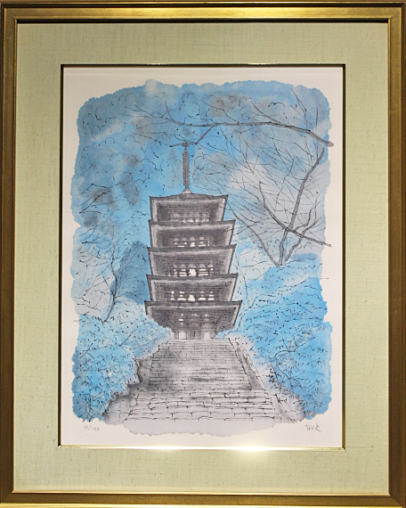 ■★平山郁夫【室生寺の塔】リトグラフ 直筆サイン エディション有り
