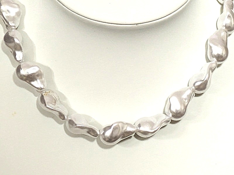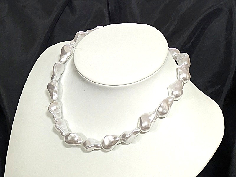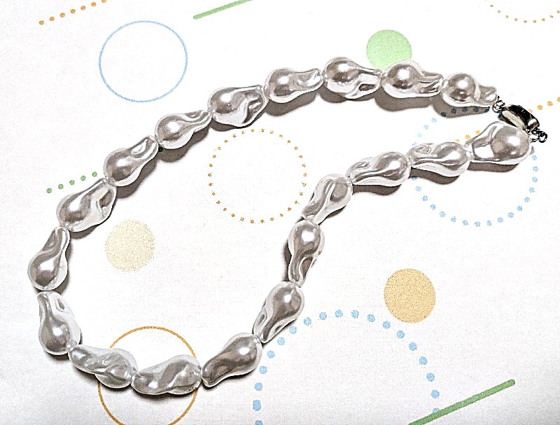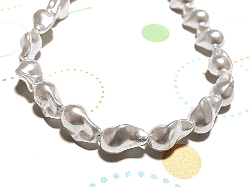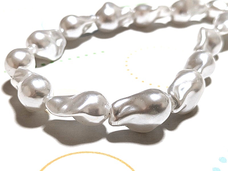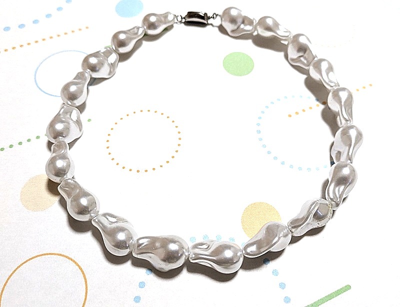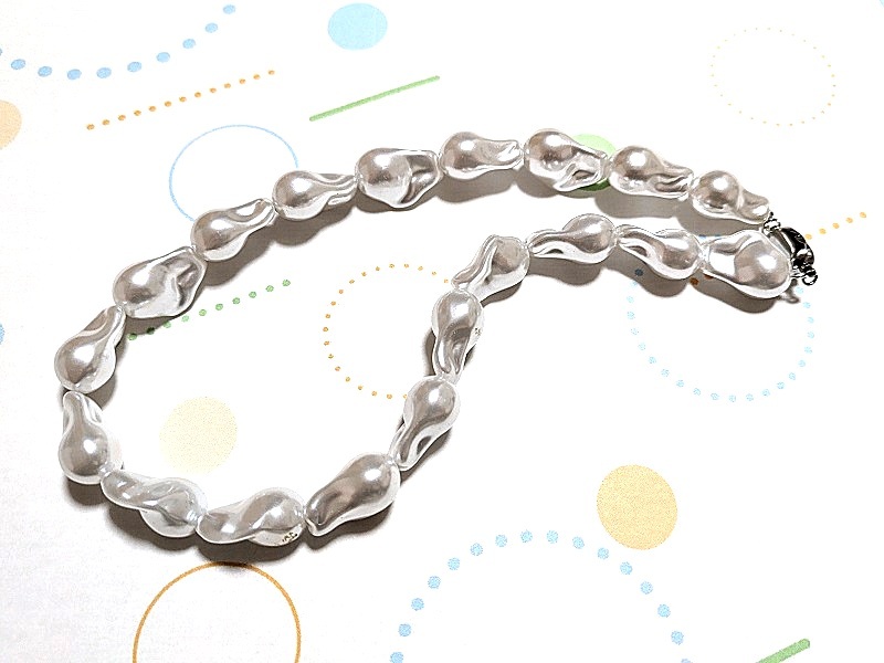 真珠の種類 Pパール 特殊樹脂 参考価格 7000円~13000円前後 色 ホワイト系 サイズ 13mm~20mm前後 形 変形、 照り 最高優れてます、 長さ 43cm前後 クラスプ プッシュ式 肌に優しい ステンレス パールはそれぞれ個体差がございますので予めご了承下さいませ。 別注等 ブック型ケース 1700円 必要な方のみ | |||