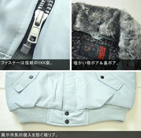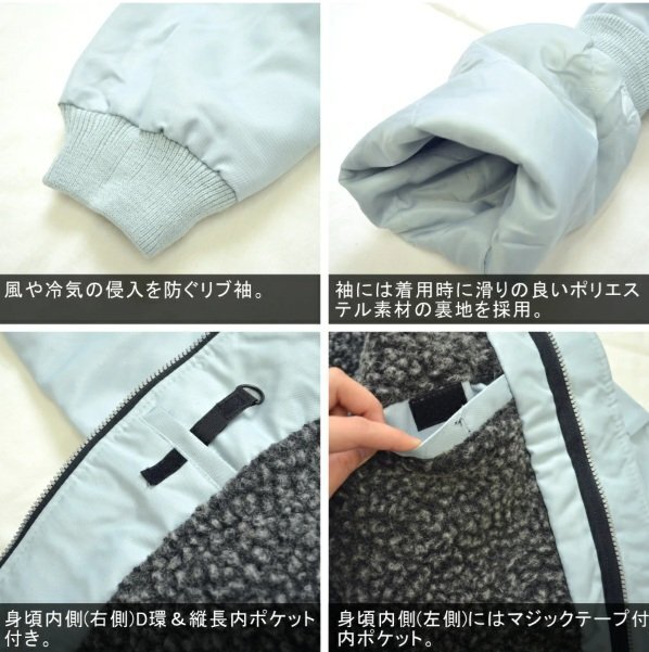 ■■■メーカー■■■ AITOS/アイトス ■■■品 名■■■ 裏ボアパイロットジャンバー/裏キルト防寒ブルゾン 影狼 ■■■品 番■■■ 10549 ■■■カ ラ ー■■■ グレー/004 ■■■サ イ ズ■■■ LLサイズ/着丈70×裄丈91×胸130 ■■■状 態■■■ 【未使用】 未使用品になります。綺麗に畳まれたままの商品ですので、広げての検品、計測は行っておりません。畳まれた内側にシミ等あった場合でも現状渡しとなりますので、ご了承下さいませ。保管品であることをご理解の上、ご入札下さい。 ※状態や付属品の有無につきましては、できるだけ詳細を記載するよう心掛けておりますが、見落しや欠品があった場合でも現状優先となります。状態や付属品等に関して、気になることがございましたら、事前に必ずご質問くださいませ。 ■■■商品説明■■■ ★★肌あたり暖かな大粒ボア&取り外し可能な襟ボアを装備★★ ●袖の裏地には着用時に滑りがよいポリエステル生地を採用。 ●身頃がボアなので肌あたりが暖かく、着た瞬間に冷たさを感じることなく暖かく着用頂けます。 ●ファスナー付き胸ポケット。 ●左腕ファスナー付きポケット&ペン差し。 ●重防寒までは必要ない方、適度な暖かさでお手頃な上着が欲しいという方におススメの商品です。 【付属品】タグ |
