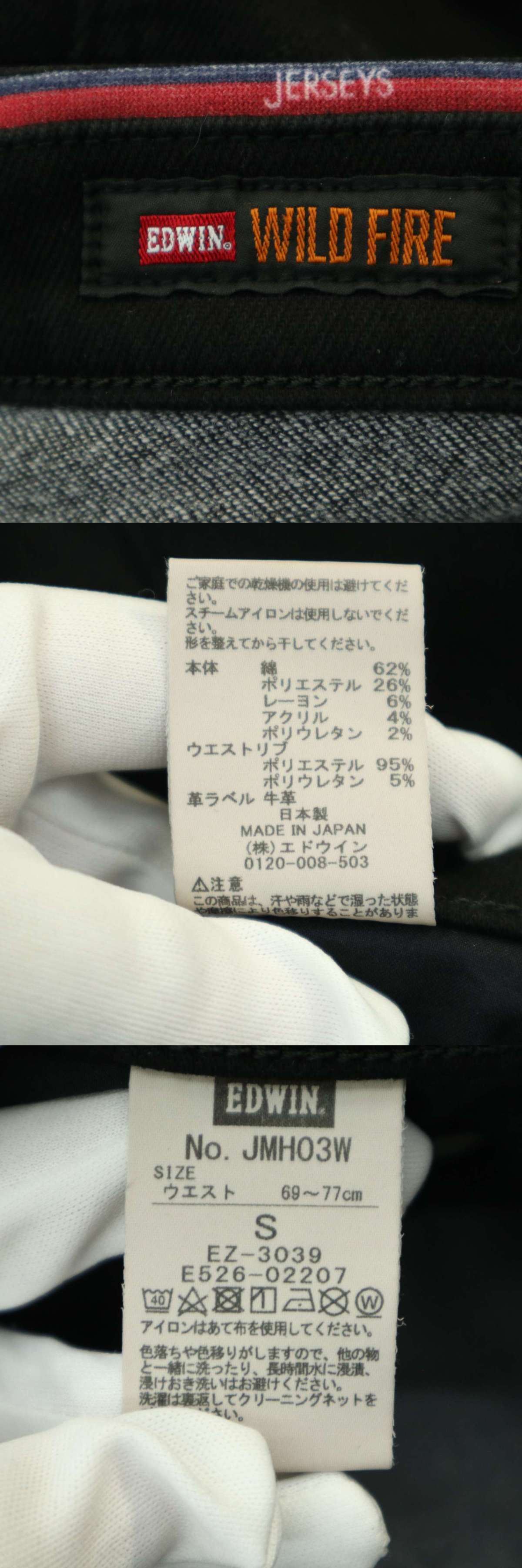 EDWIN エドウィン JMH03W WILD FIRE★ ジャージーズ 防風 裏起毛 デニム パンツ ジーンズ Sz.S メンズ 黒 日本製 バイク