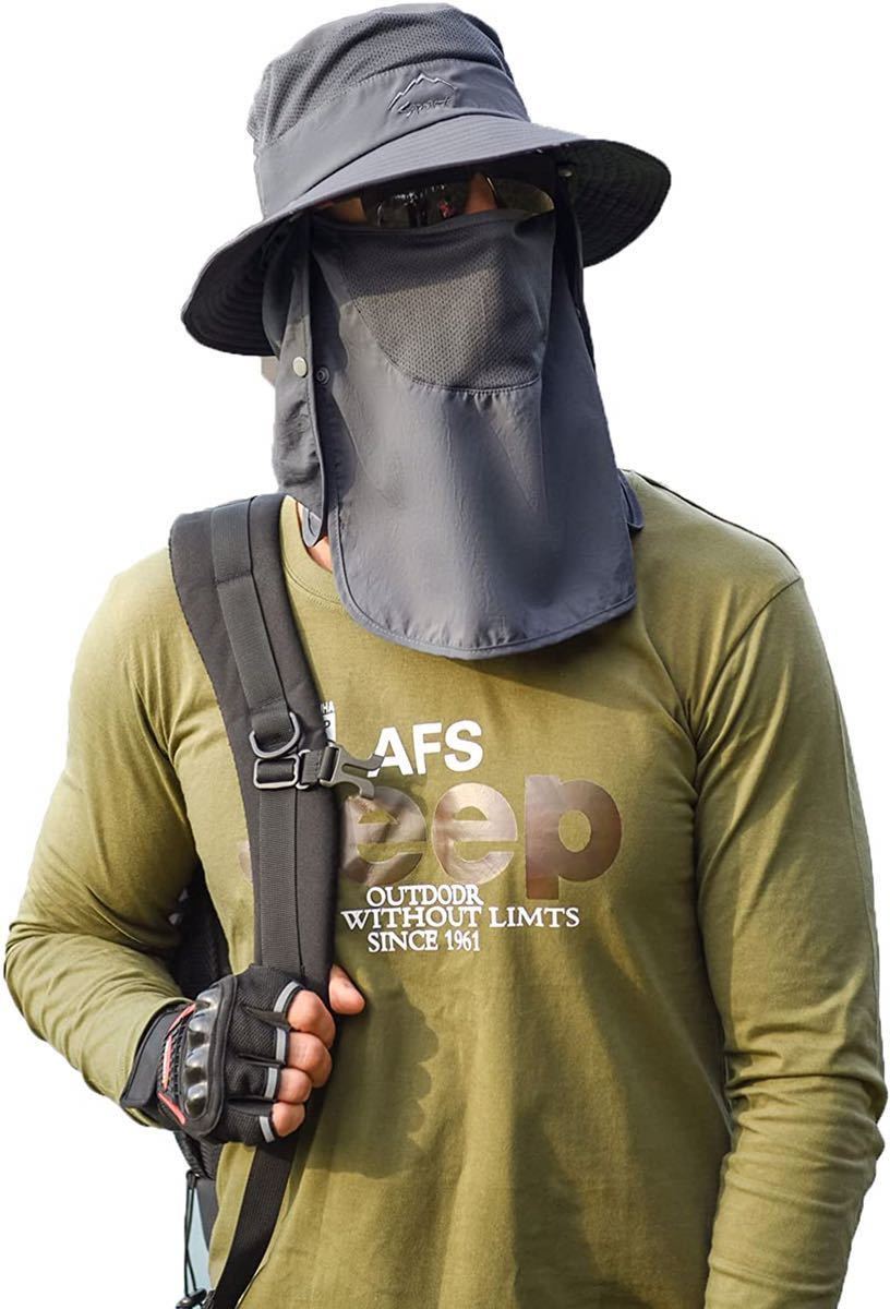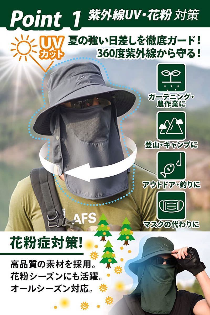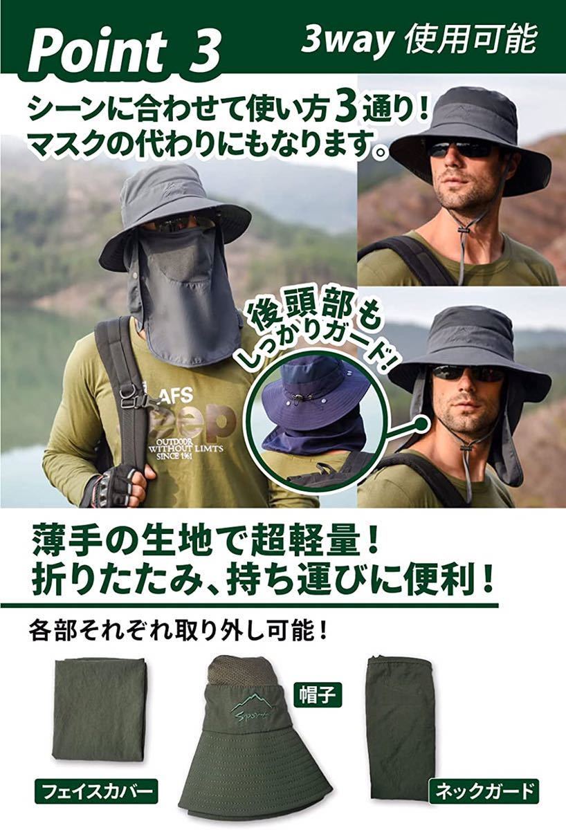 【1つで3役: 日焼け止め & 冷却 & マスク 】 つば付きハットに、ネックガード・フェイスマスクもついた、1つで3役の機能性サファリハットです。 顔・首・頭の日焼け防止としてはもちろん、暑さ対策やマスク代わりにもなる便利グッズ。
