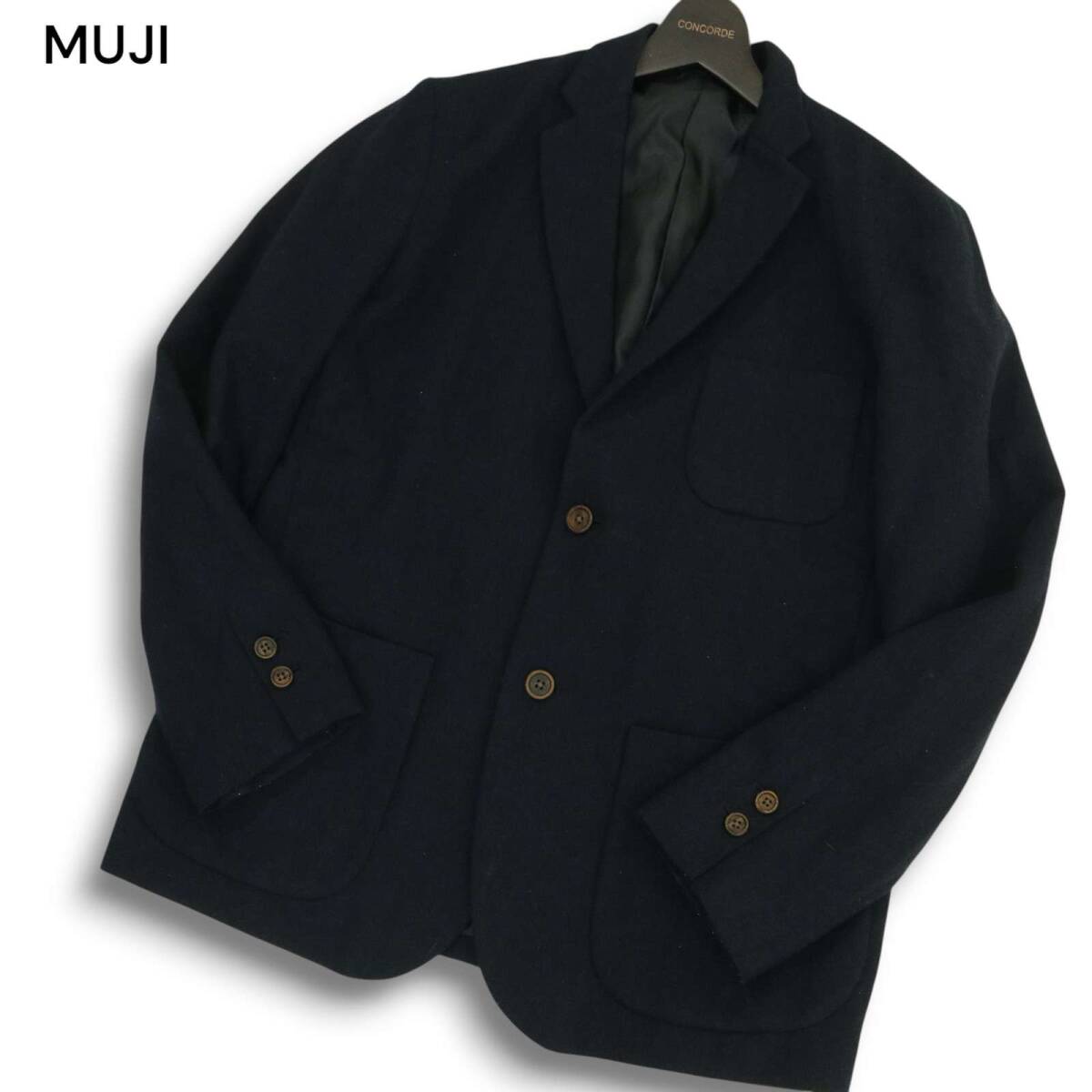 MUJI 無印良品 秋冬 総裏 ウール★ アンコン テーラード ジャケット ブレザー Sz.M メンズ ネイビー