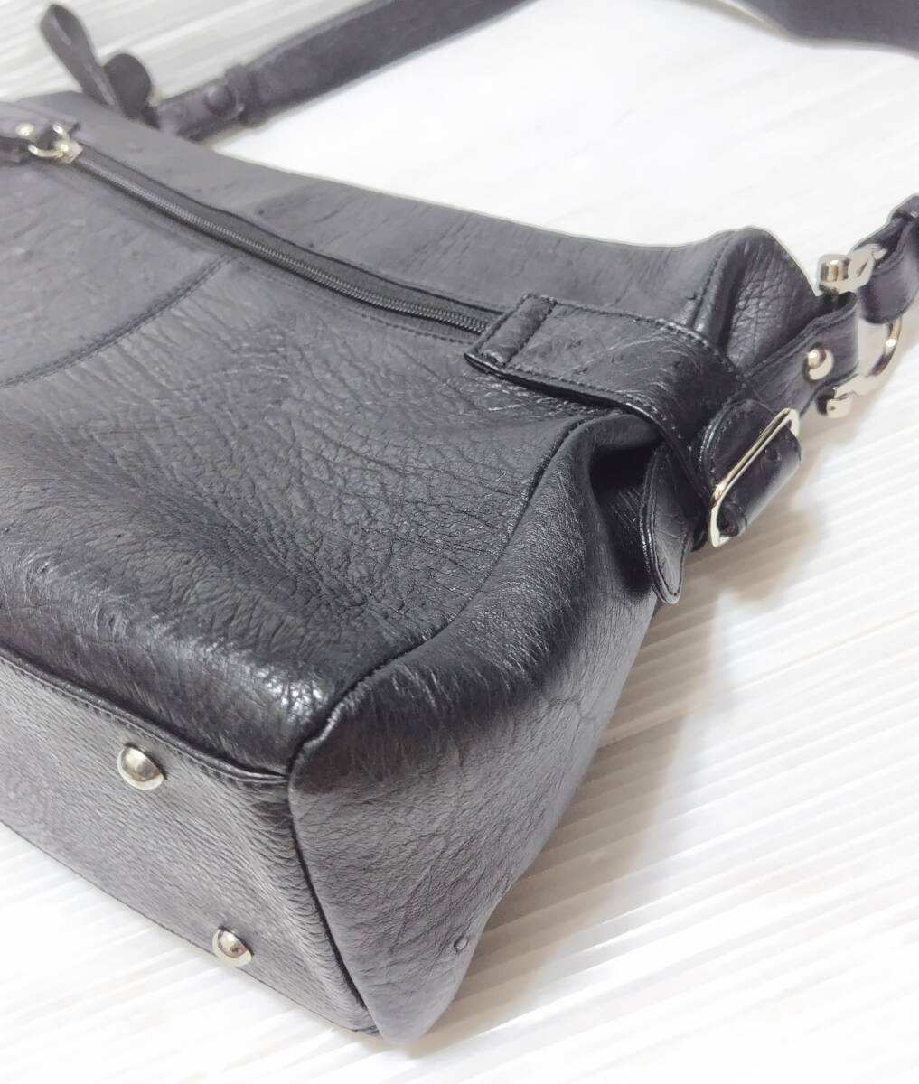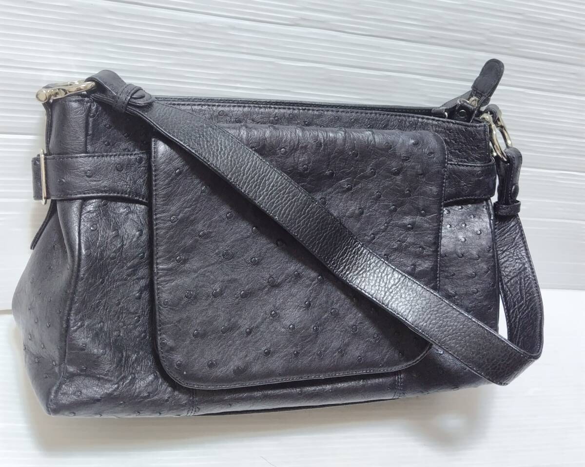 大きめ 高級♪ リアルオーストリッチレザー 駝鳥革 ダチョウ 駄鳥 ショルダーバッグ セミショルダー 肩がけバッグ 肩がけ鞄 黒 ブラック