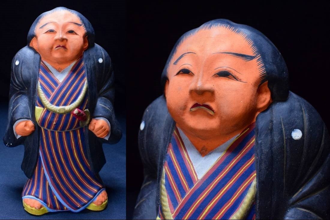 高さ 約26cm 横 約16cm 奥行 約10cm 郷土玩具 土人形 お相撲さん 相撲取り 横綱 力士 関取 すもう 土俵入り 伏見人形 民芸品 経年での汚れ、スレ、カケなどご了承くださいませ。 詳しくは画像で御確認くださいませ。 |