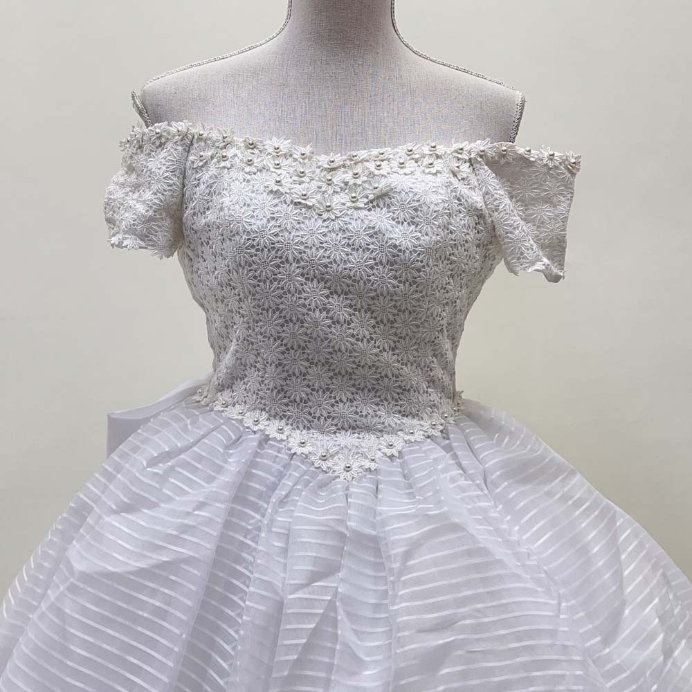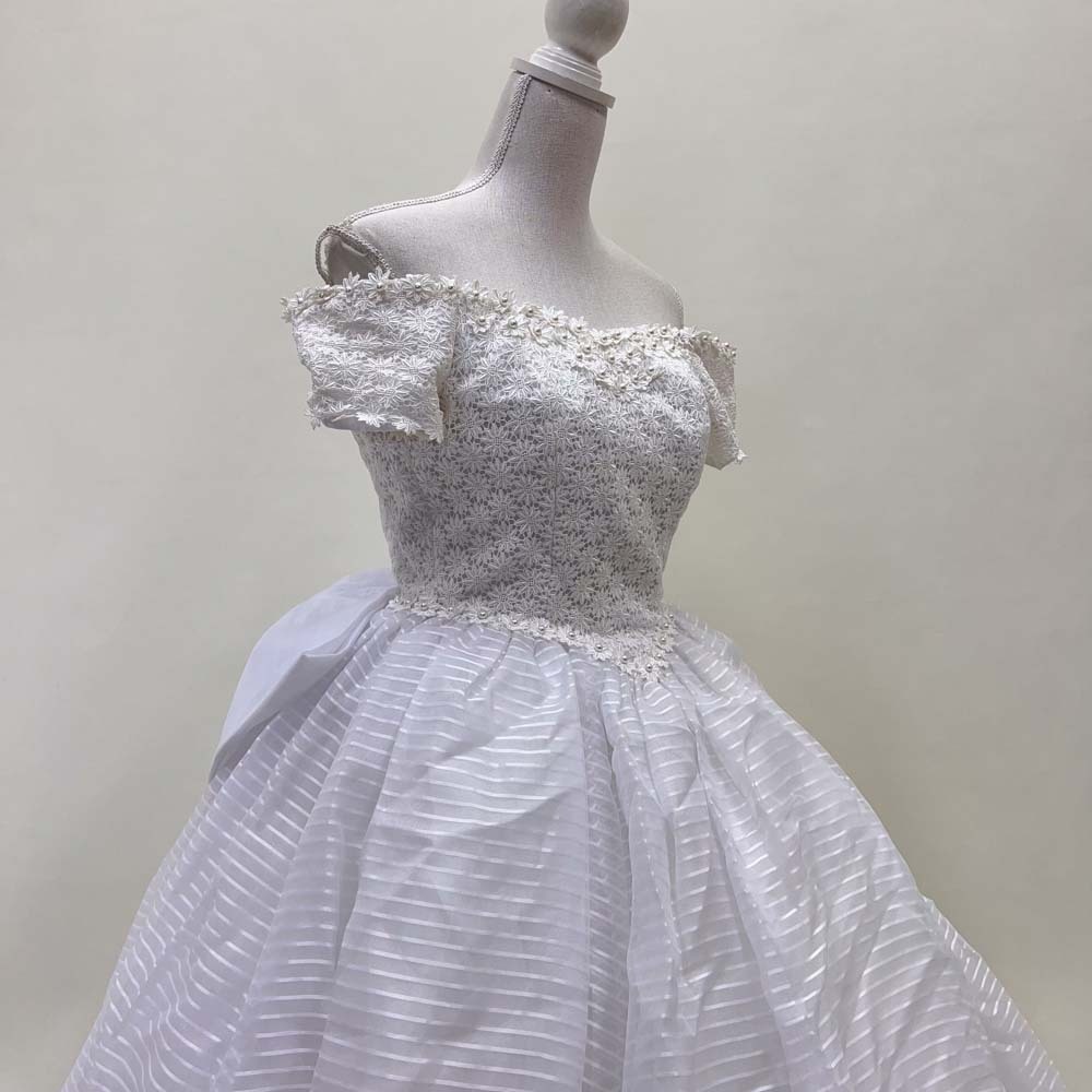 商品名 | ウェディングドレス 7号T 日本製 中古 オフショルダー ホワイト W-240 |