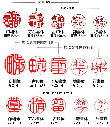 | 印相体・てん書体・古印体・隷書体・楷書体・行書体・書体印影集を参照して下さい。 | ||