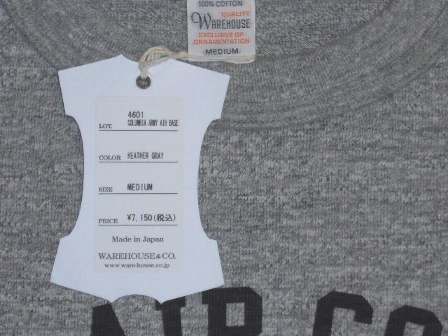 25 ウエアハウス 4601 COLUMBIA ARMY AIR BASE クルー 杢グレー M 半袖 Tシャツ