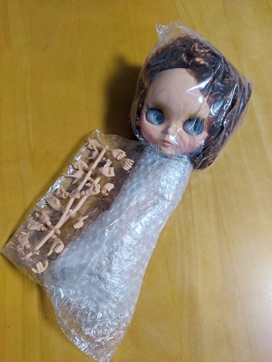 カーリーヘアのブライス人形と交換用手パーツが付属。