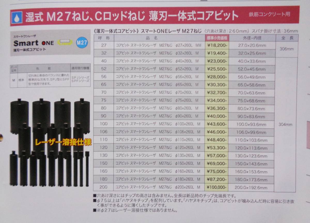 | 適用コアビット | M27 ねじ | |