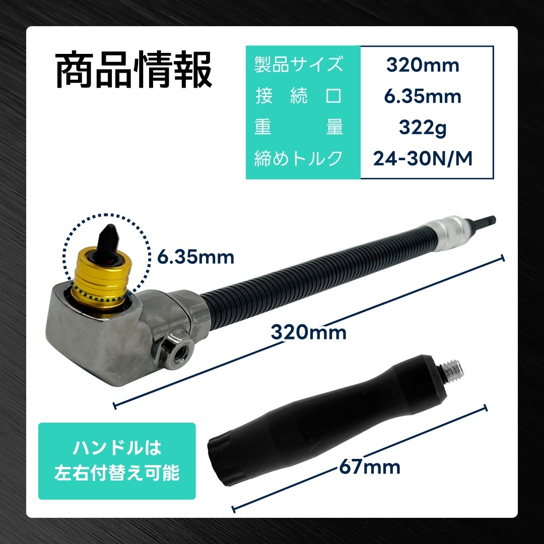 国内ブランドLongsafe製、90度L型アングル設計で届きにくい角度や狭いスペースでのネジ締めを可能にします。フレキシブルシャフトで自由な角度調整ができます。
