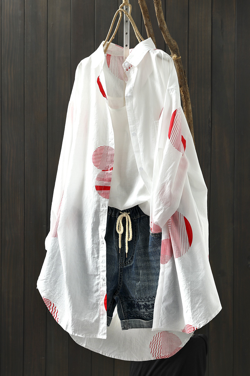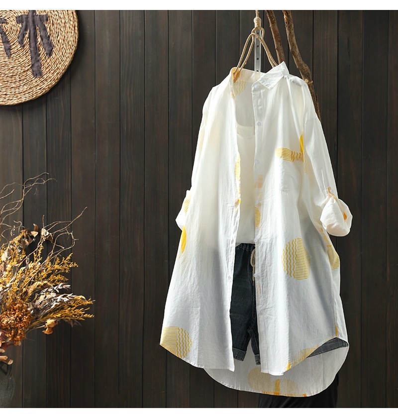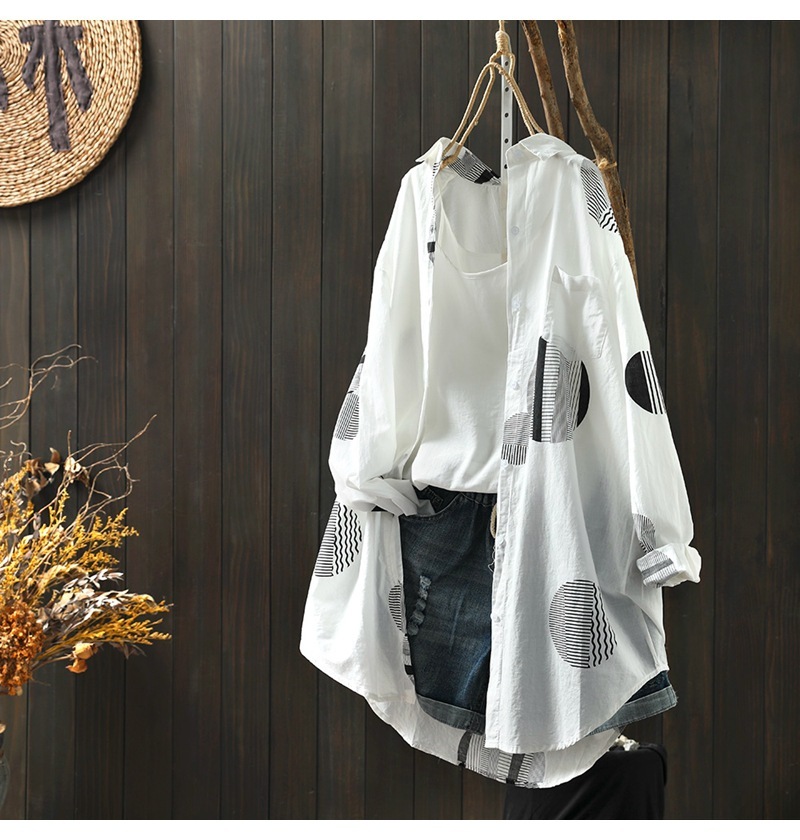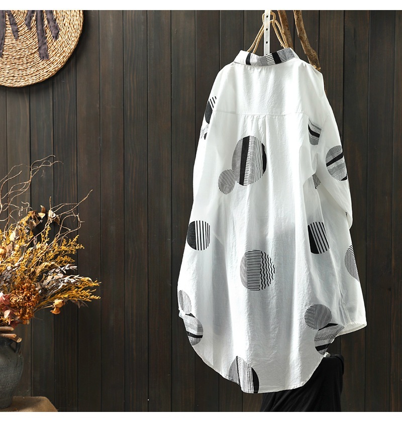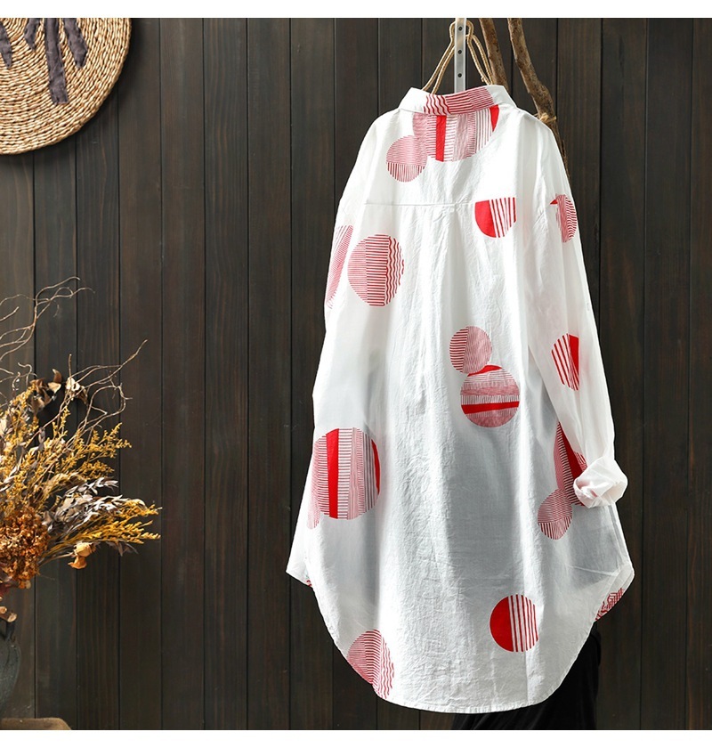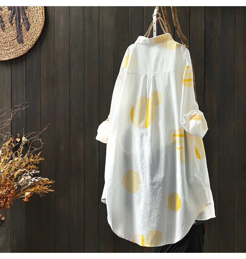 人気品お色選択可ロングワイシャツ フリーサイズ カーディガン チュニック トップス 水玉模様 綿100% ナチュラル 通気性肌触り抜群 カラー