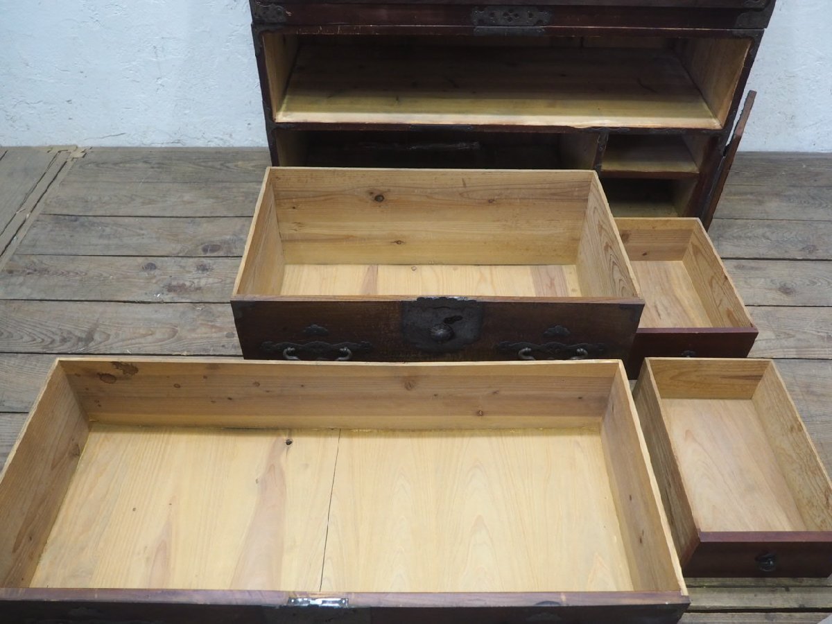 タ荷S0848◆H114,5cm×W106,5cm◆2段重ねのレトロな時代箪笥◆前欅 収納棚 陳列台 和タンス チェスト ローボード アンティークR(ヤD)松
