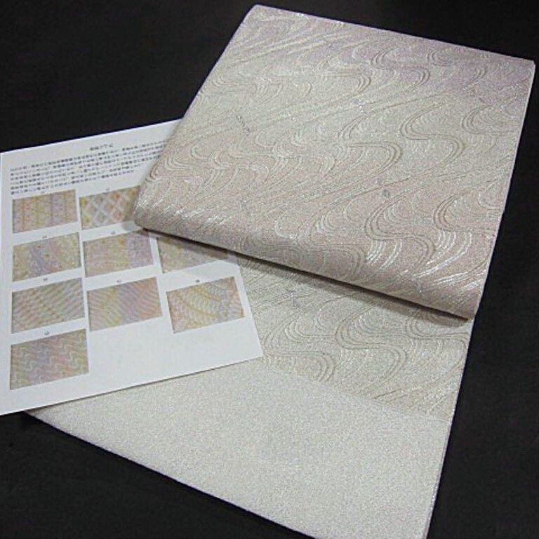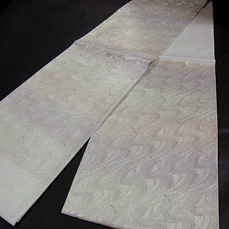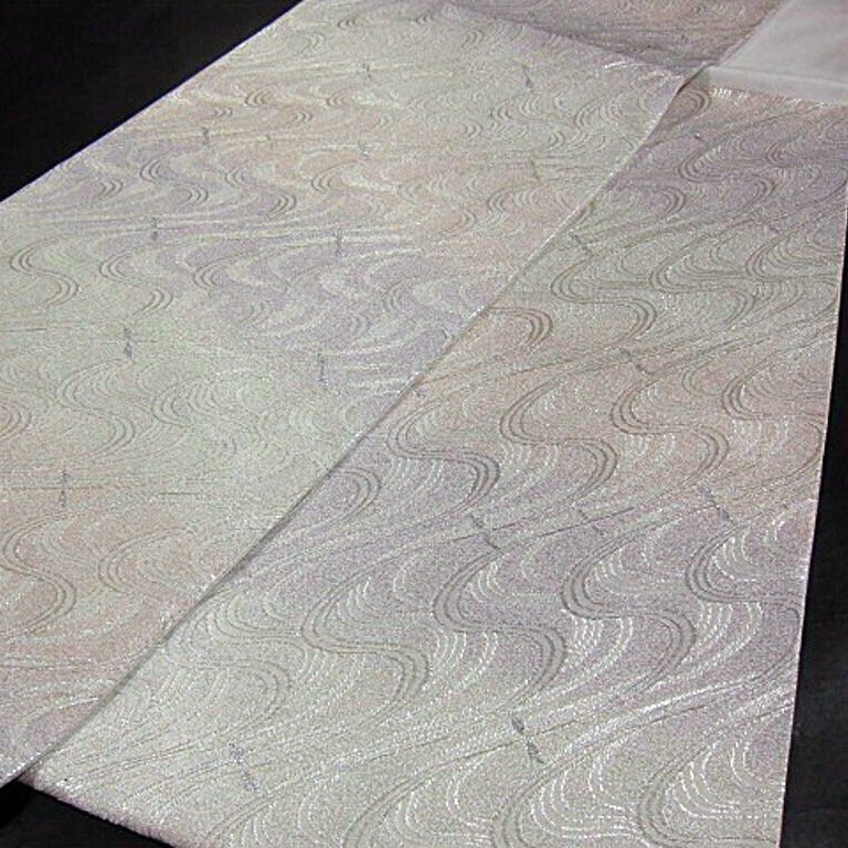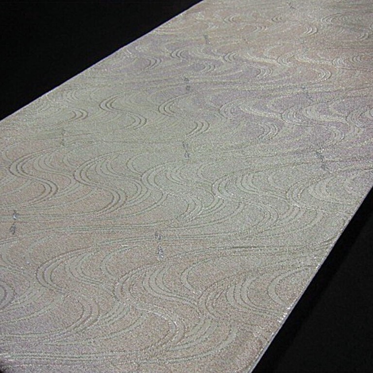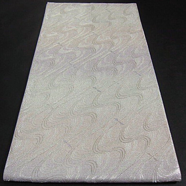 新品未仕立 西陣織袋帯 悠彩つづれ です。 『古代中国・漢時代の波状曲線模様は、神仙時代の特徴であり、神意を表し邪をさけるものと考えられていました。青銅製の香炉などで名高い博山炉に多く見られる流波文や雲気文も不老長寿の象徴と伝えられており、雅子さまの清楚なローブデコルテにも復元されています。この帯は、経銀糸の上品な光沢と美しいよこグラデーションで斜線構成の幾何学文様や鳳凰、唐草流波文を織り込みました。格式高いお席から、お気軽な集いまで幅広い装いに晴れやかな気品と優美が香りたつ織華を咲かせます。』