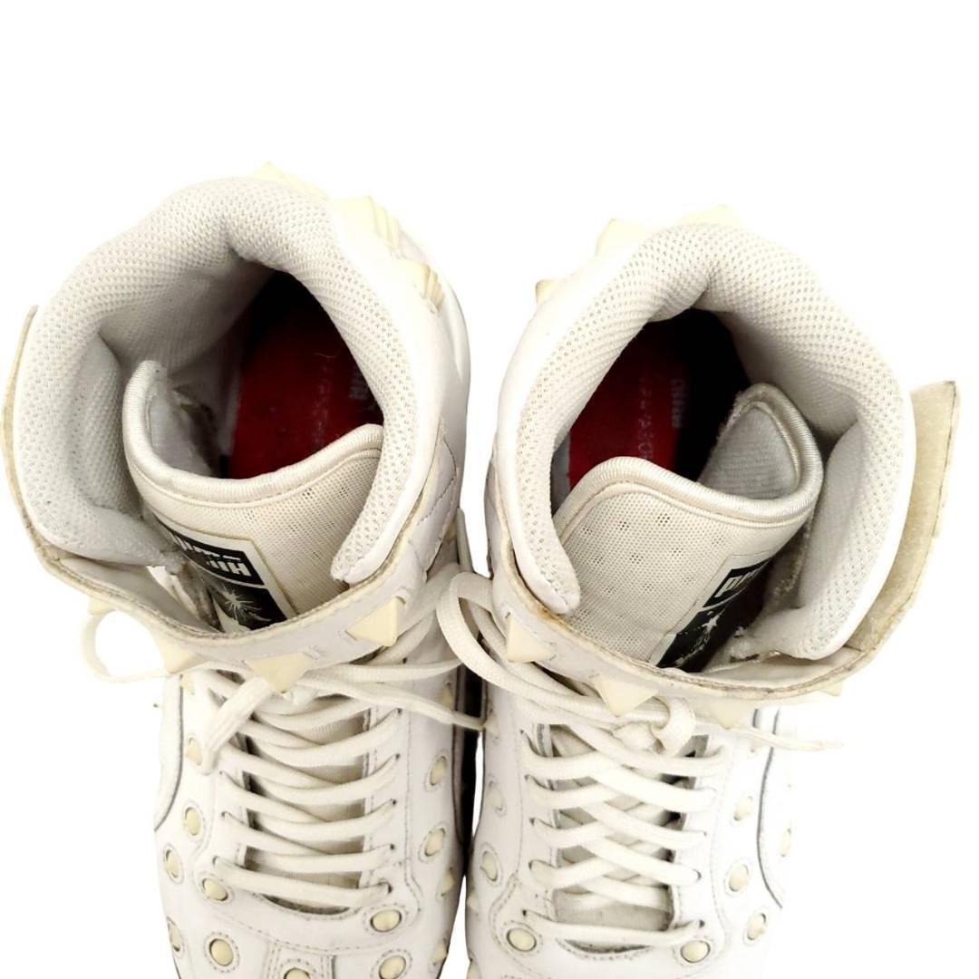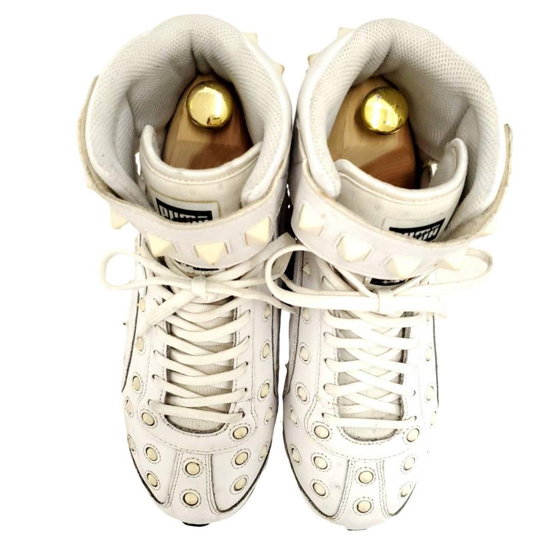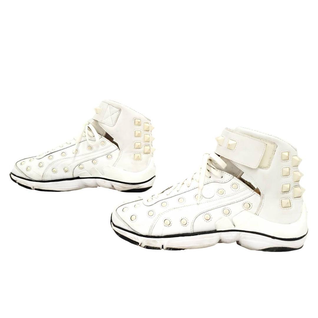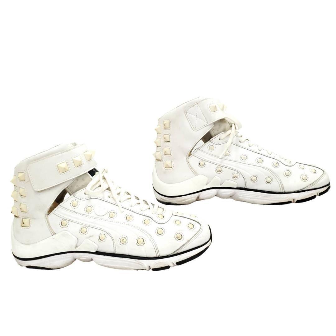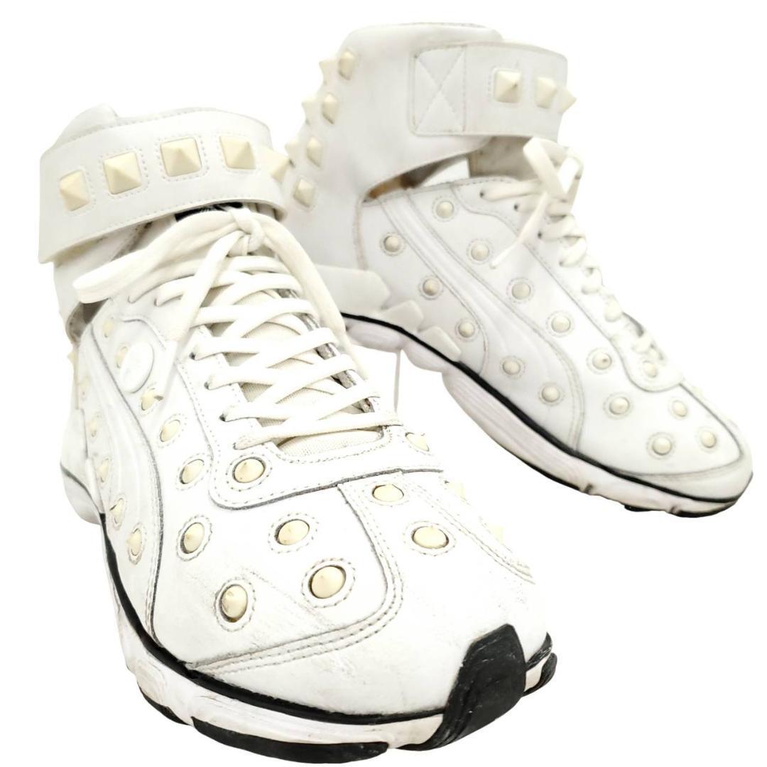 Mr.Childrenの桜井さん着用で話題となった、希少アイテム。ホワイトレザーに大胆に配置されたアイレット&スクエアスタッズが、圧倒的な存在感を放つ1足。
