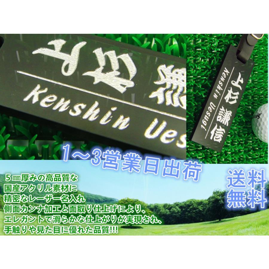 ネームプレート ゴルフ 銀文字 シルバー ベルト付き アクリル 5mm 送料無料