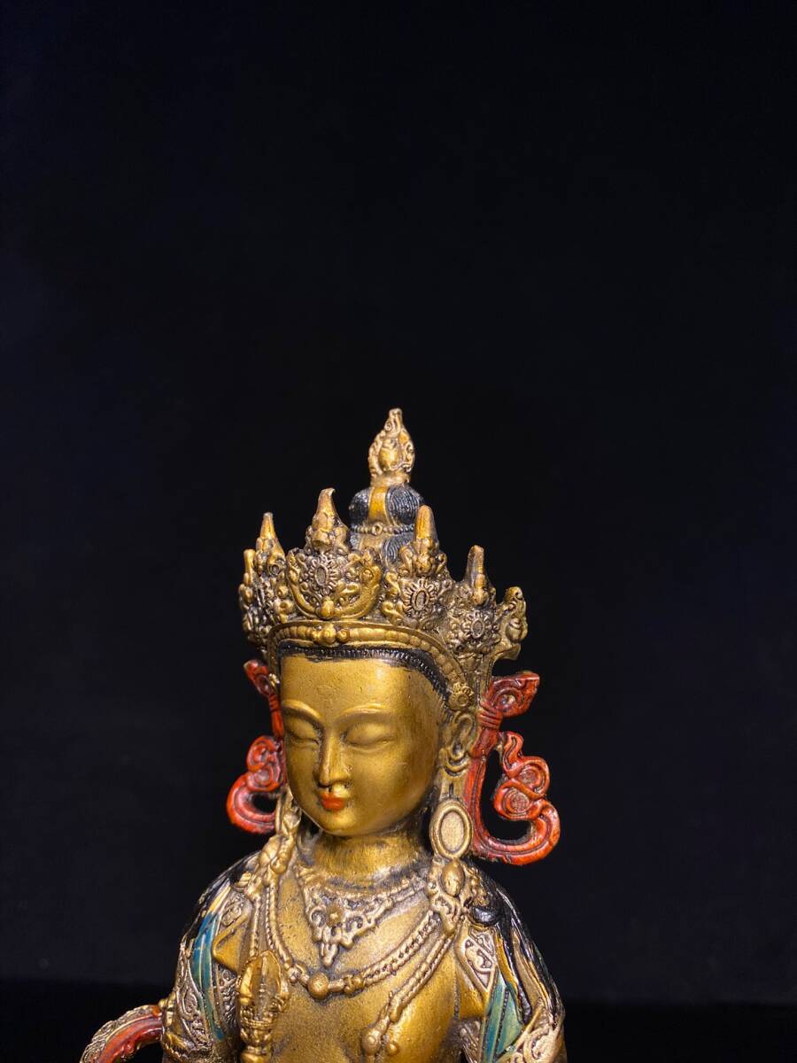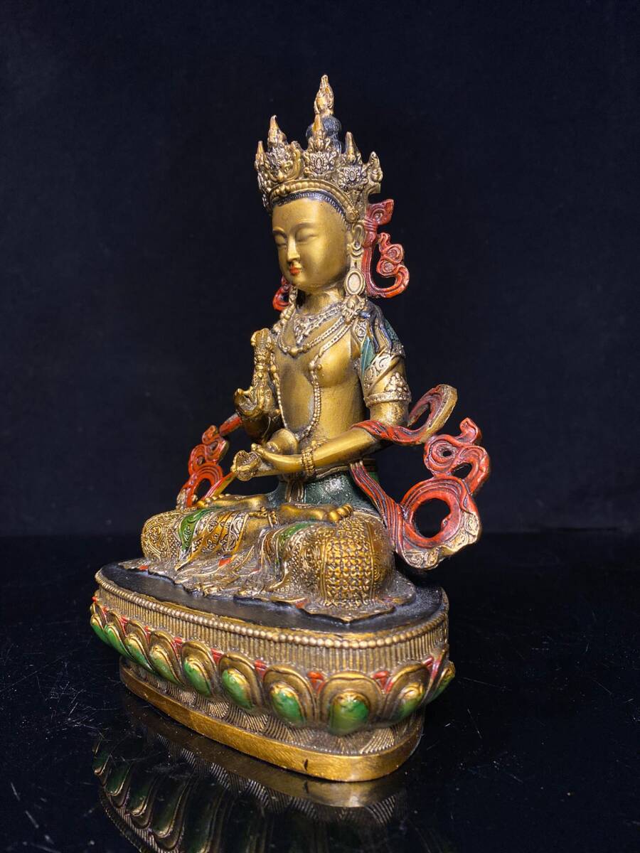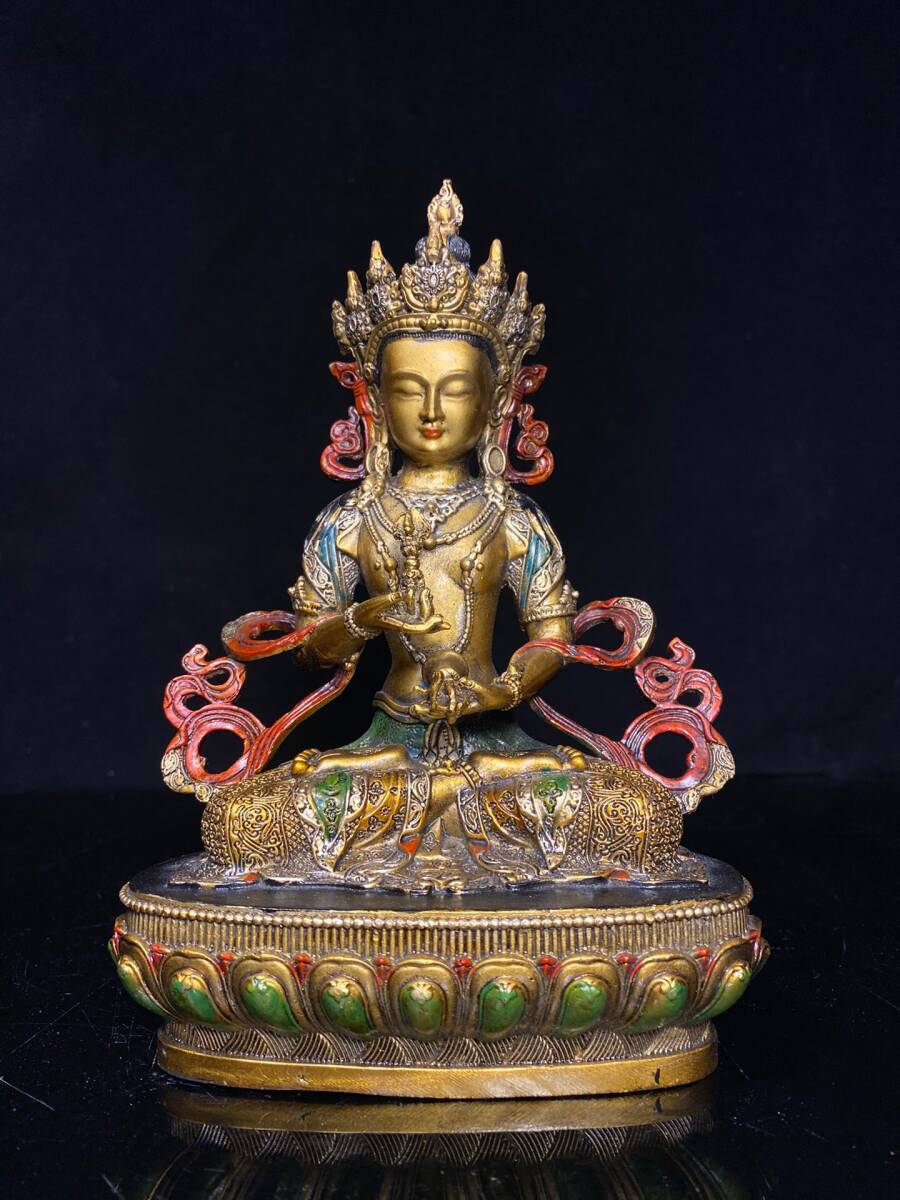 | 【蔵友館蔵品・銅製・金鍍・彩繪・金剛薩像・仏像・宗教・仏教古美術・供養品】・古董品・中国古玩・時代物・希少珍品・中国時代美術 |