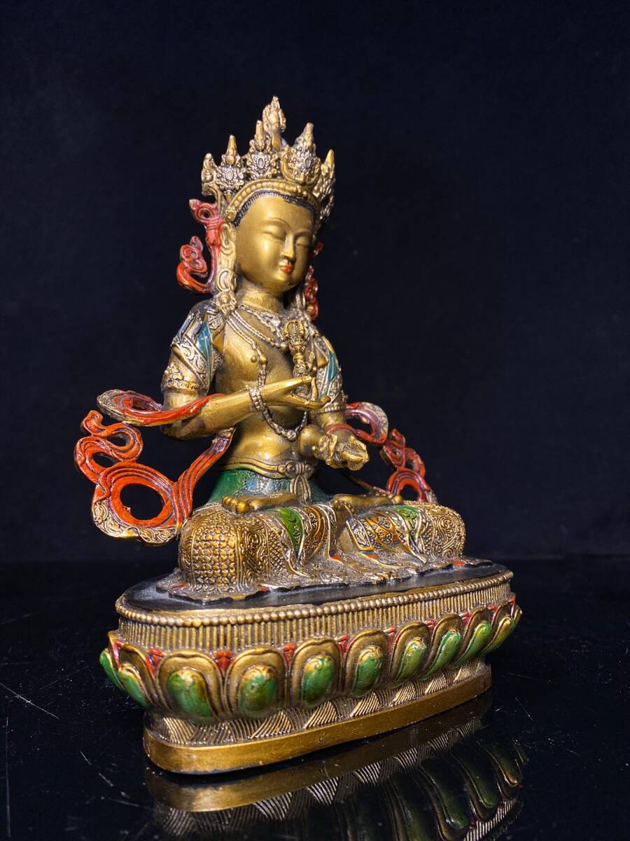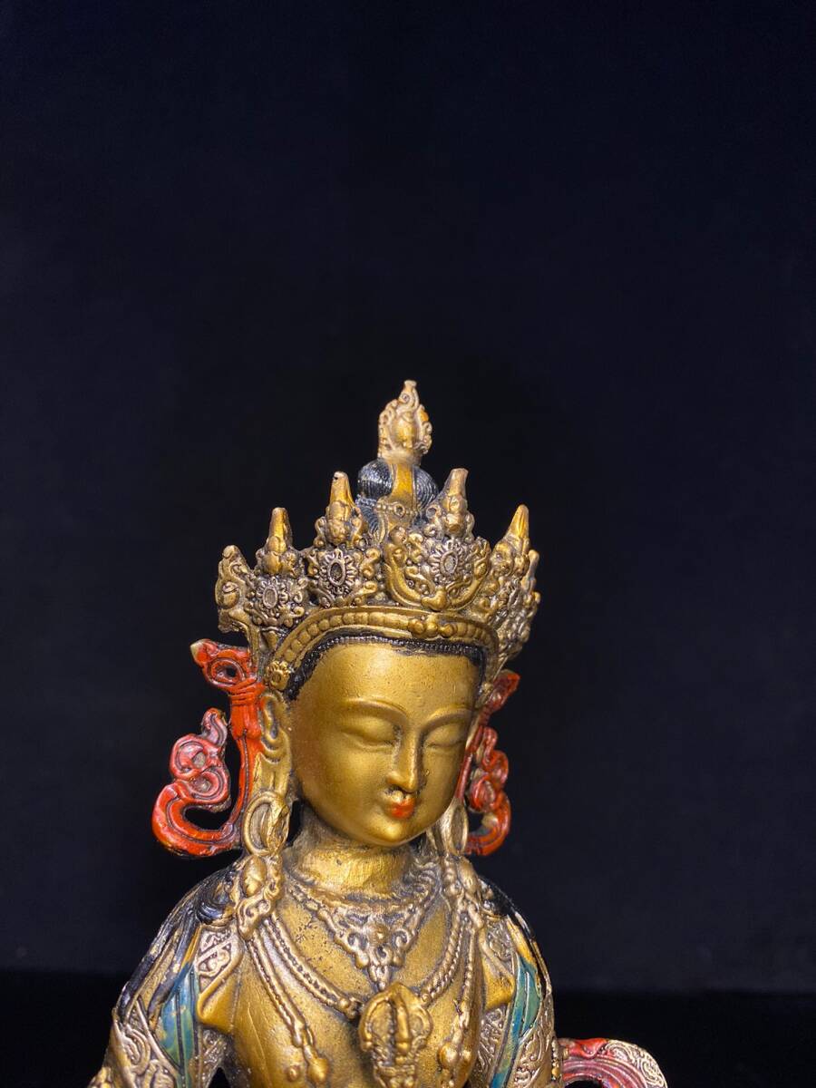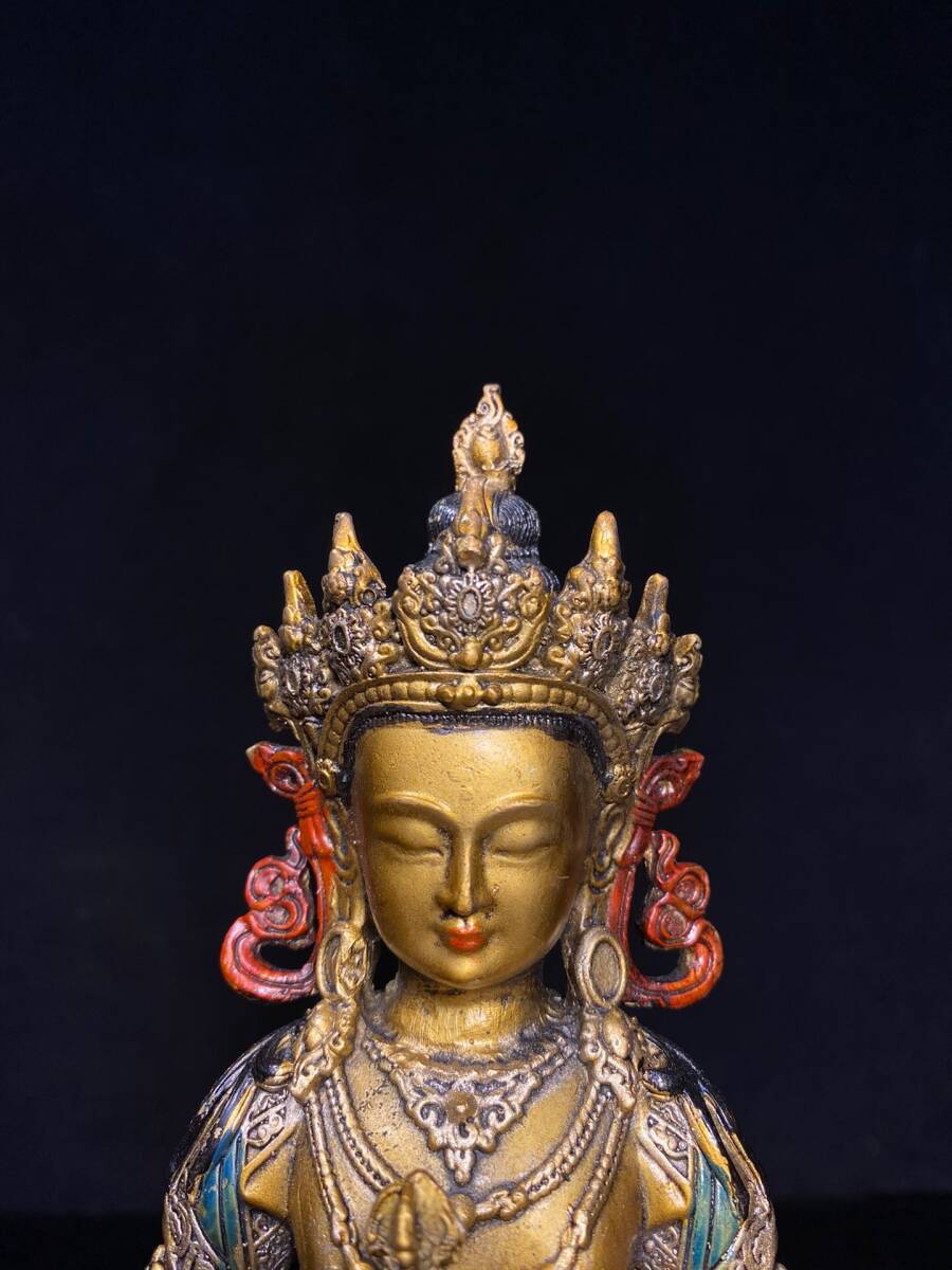 | 【蔵友館蔵品・銅製・金鍍・彩繪・金剛薩像・仏像・宗教・仏教古美術・供養品】・古董品・中国古玩・時代物・希少珍品・中国時代美術 |