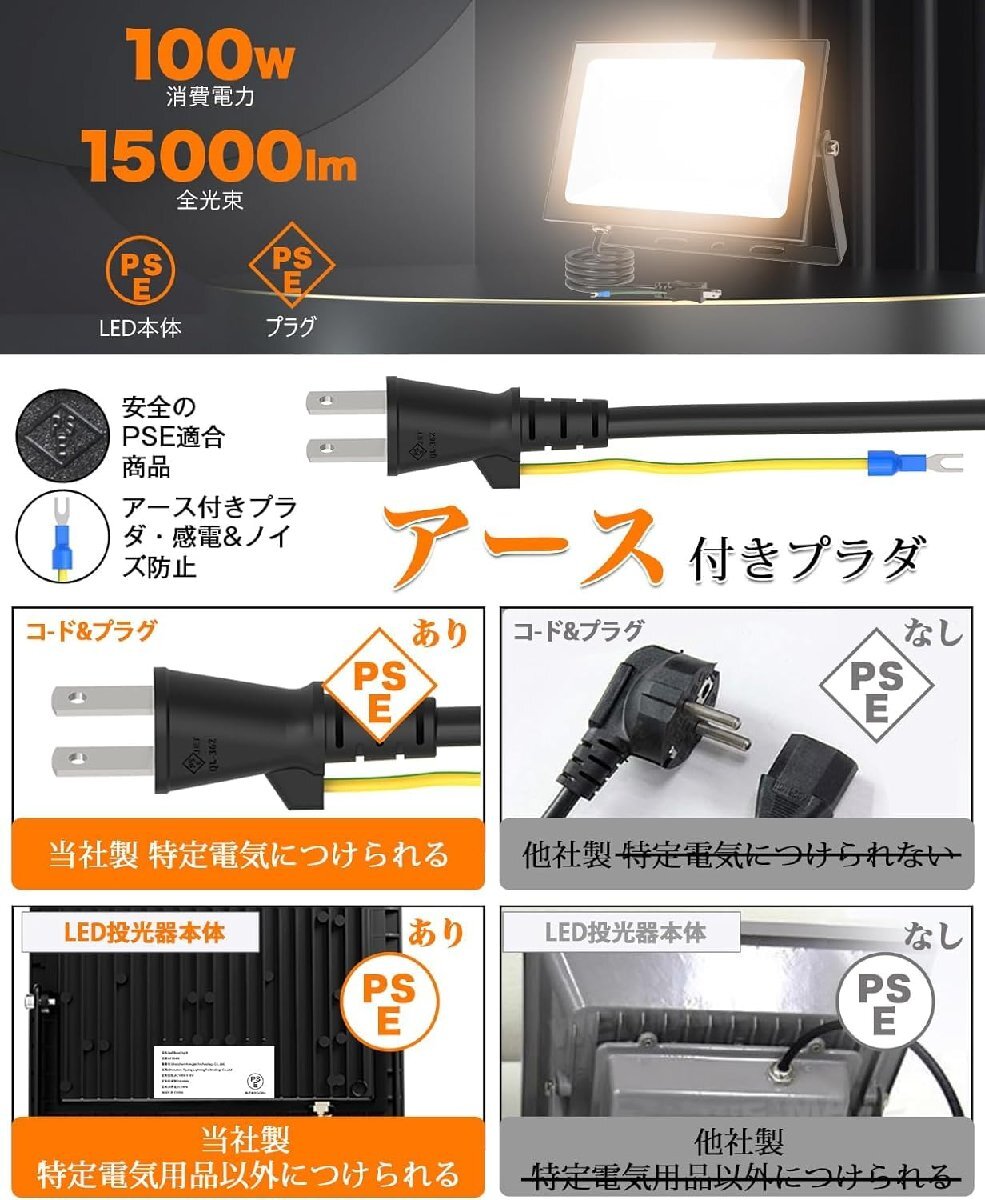 【在庫限りです】【タイムセール】投光器IP66照明20000LM100v作業灯屋外【超薄型・1個セット】KIWENLEDledライト暖光色防水150W看板灯屋外