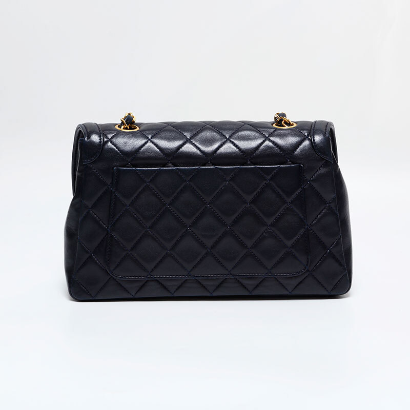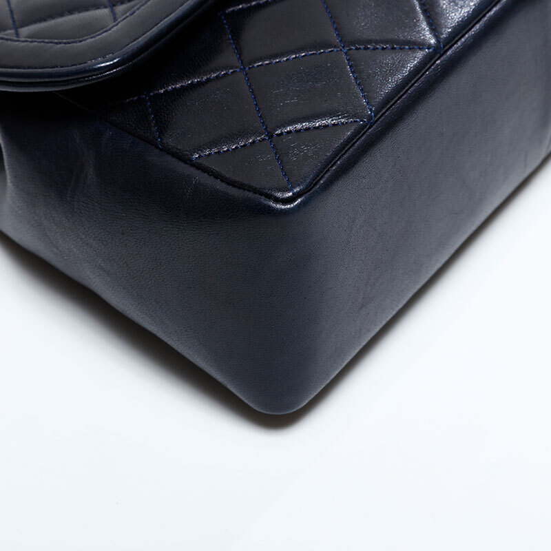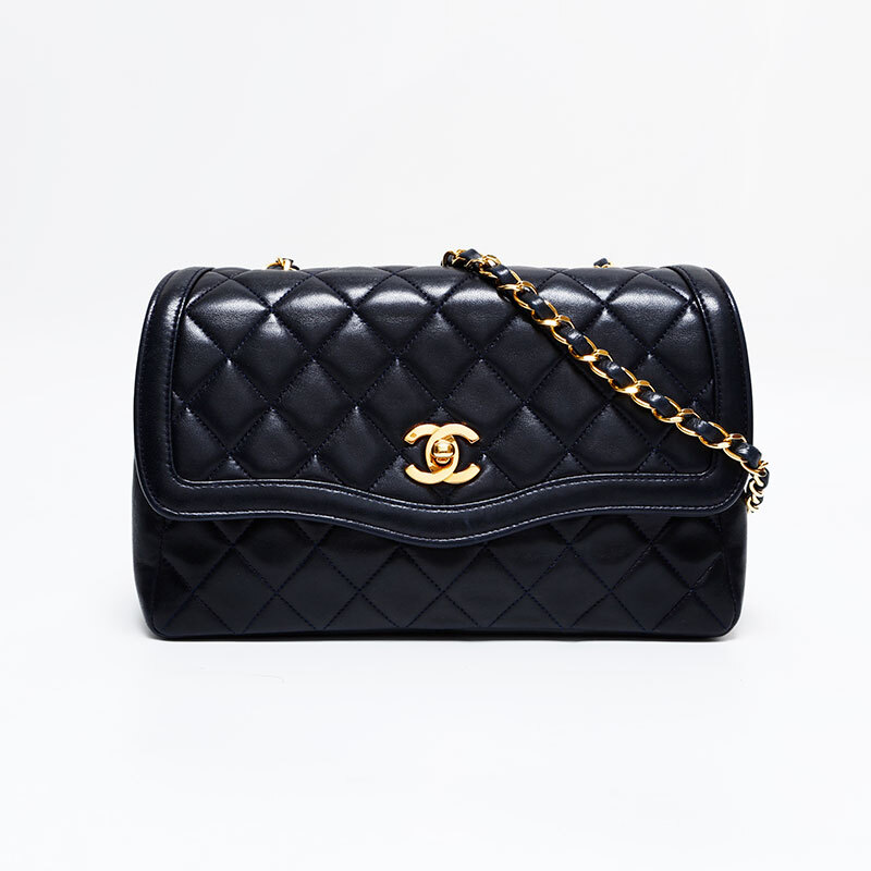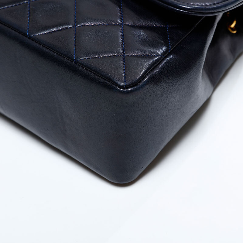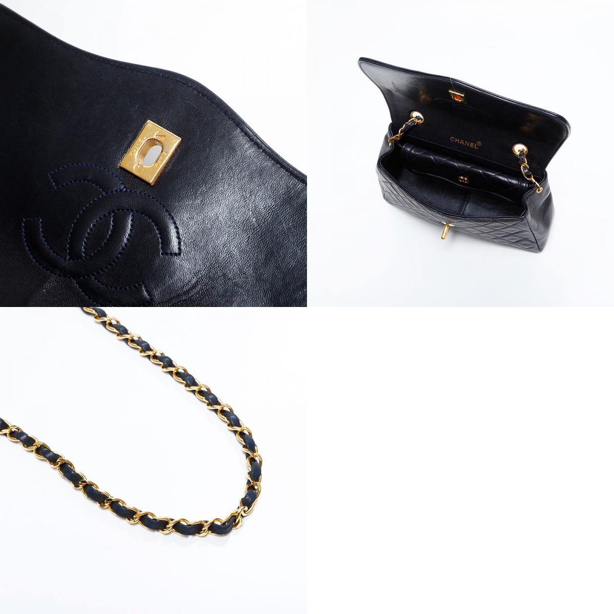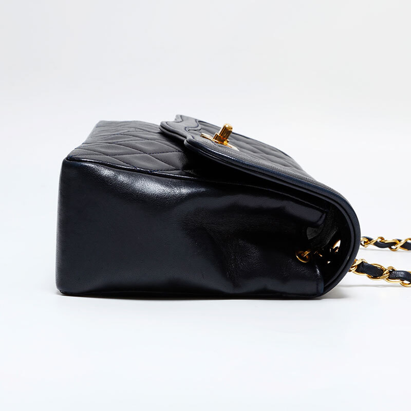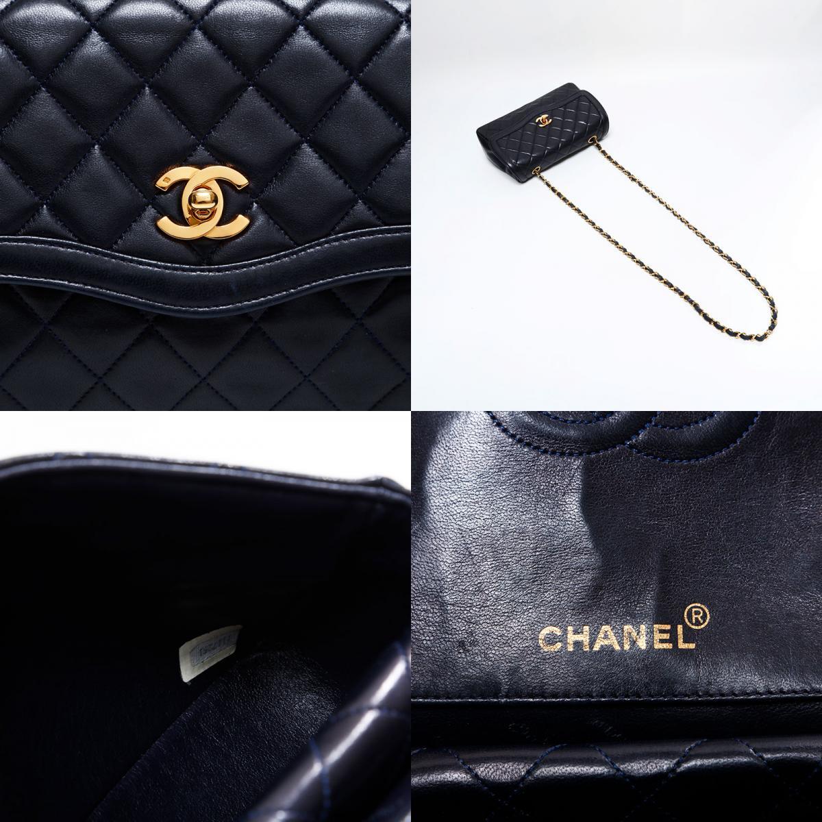 極美品 CHANEL 1番台 1989-1991マトラッセ ラムスキンポーチ付き ショルダーバッグ ネイビー